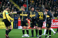 20 Minuten vor Schluss gab’s noch eine Kostprobe von Sergio Pinto. Aus halbrechter Position und gut und gerne 25 Metern feuerte der Rechtsverteidiger die Kugel in Richtung linker Torwinkel. Nur eine Flugeinlage von Gospodarek verhinderte eine weitere Bewerbung des Aacheners um das Tor des Monats. So war am Ende Freude über die Herbstmeisterschaft angesagt, auch wenn die Meinungen über diesen Titel eindeutig waren. „Wir haben damit noch nichts erreicht“, erklärte Hecking. Sportdirektor Jörg Schmadtke konstatierte immerhin einen psychologischen Wert, stellte aber dennoch klar: „Diesen Titel kann man nicht mal für den Briefkopf verwenden.“ Vor der konzentrierten Arbeit am weiteren Erfolg in der Hinrunde feierte das Team aber mit den rund 20.000 Fans Platz 1 nach der Hinrunde und eine Serie von sieben ungeschlagenen Spielen.