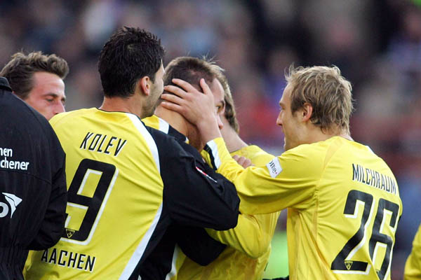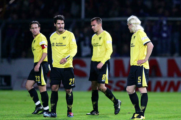 Alemannia Aachen: Fiel, Klitzpera, Kolev, Lehmann, Leiwakabessy, Milchraum (71. Weigelt), Nemeth (81. Casper), Polenz (56. Lagerblom), Reghecampf, Stehle, Straub / Trainer: Guido Buchwald