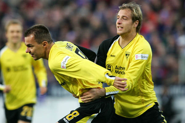 Auf dem Weg zu den ersten Auswärtspunkten nach zuletzt drei Niederlagen legten die Aachener los wie die Feuerwehr. Noch keine 60 Sekunden waren gespielt und die Alemannia führte mit 1:0. Nach einem Abschlag von Keeper Stephan Straub traf VfL-Abwehrspieler Marcel Schuon den Ball nicht richtig. Szilárd Nemeth reagierte blitzschnell und ließ mit einer tollen Direktabnahme dem verdutzten VfL-Keeper Tino Berbig keine Chance. Es war der vierte Treffer des Slowaken und langsam bekommt man den Eindruck, dass wenn er trifft, es stets ein Tor für die Galerie wird. Auch im weiteren Spielverlauf blieben die Schwarz-Gelben am Drücker und sorgten allen voran durch den pfeilschnellen Patrick Milchraum immer wieder für Unruhe. Größere Torgelegenheiten sollten aber nicht herausspringen.