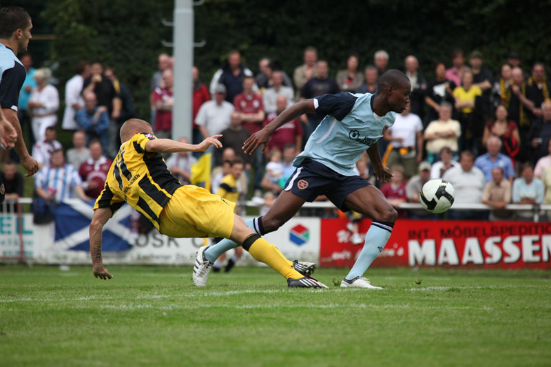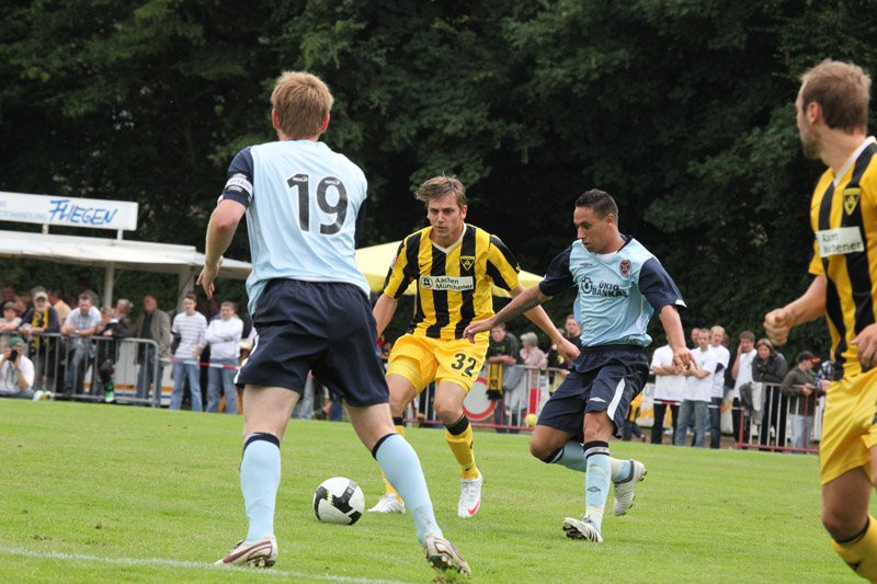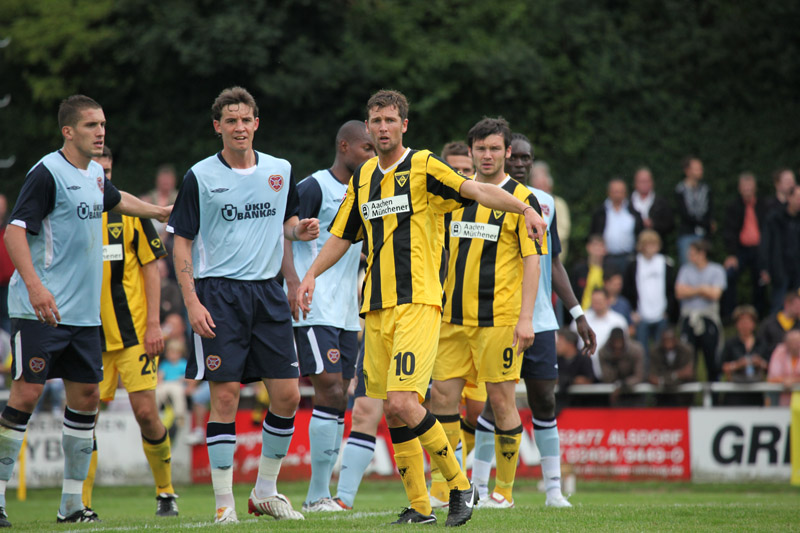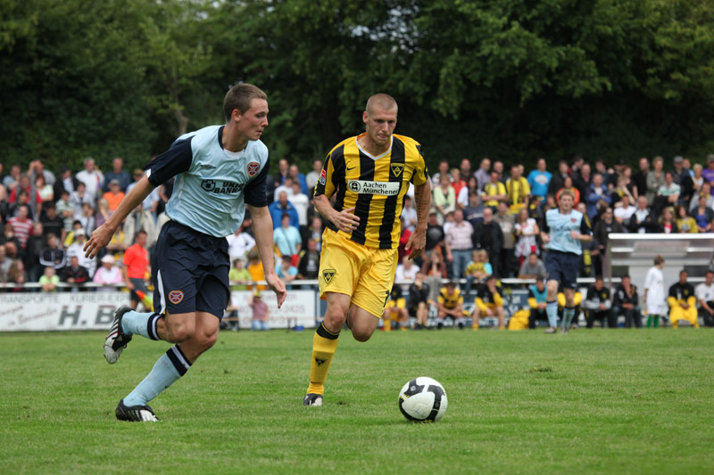 Auf der Anlage des JSV Baesweiler absolvierte die Alemannia am Sonntagnachmittag ein Testspiel gegen den schottischen Erstligisten Heart of Midlothian. Vor knapp 3000 Zuschauern kam das Team von Jürgen Seeberger im Sportpark zu einem 4:2-Sieg. Mit einem Doppelpack glich Abdul Özgen vor der Pause die frühe Führung der Schotten aus. Den 2:2-Ausgleich konterten Thorsten Burkhardt und Hervé Oussale.