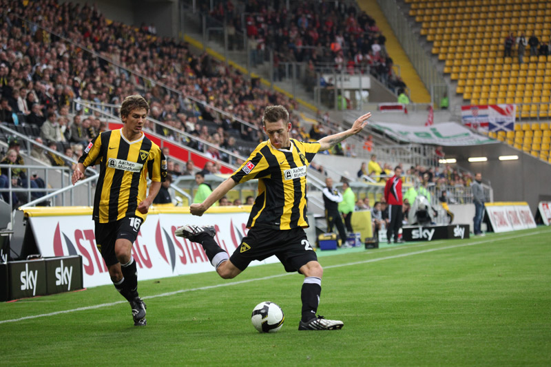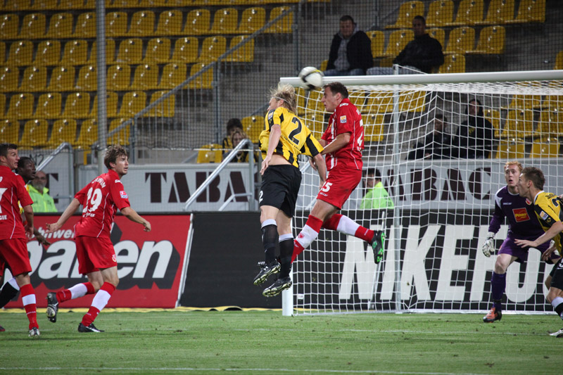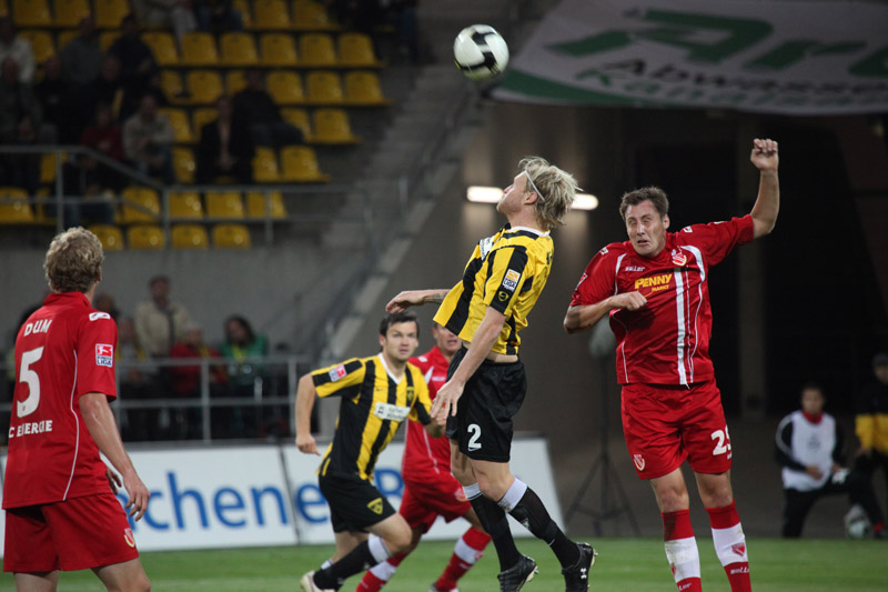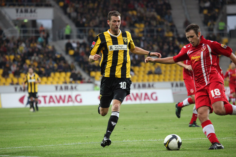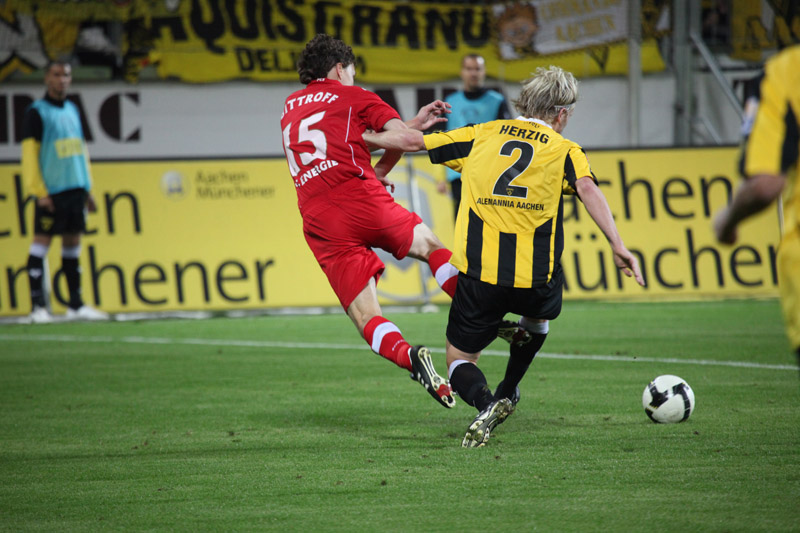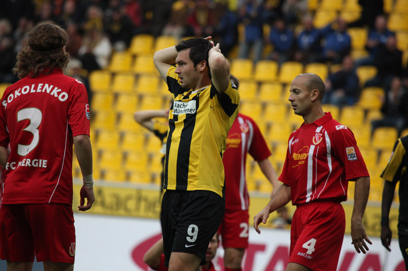 Die stärkste Saisonleistung der Alemannia ist am Ende mit nur einem Punkt belohnt worden: 1:1 trennten sich die Schwarz-Gelben von Energie Cottbus. Schon in der Anfangsphase kaufte Alemannia den Gästen den Schneid ab, Benny Auer köpfte Aachen nach einer Achenbach-Ecke in Führung (9.). Trotz einer Vielzahl guter Möglichkeiten verpasste die Krüger-Elf im weiteren Verlauf die Entscheidung. Und das bestrafte der eingewechselte Clemens Fandrich zehn Minuten vor dem Schlusspfiff mit dem Ausgleich.