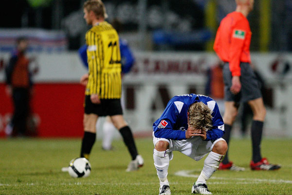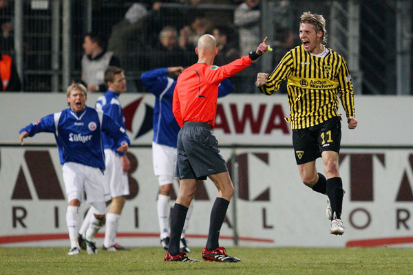 Alemannia Aachen: Stuckmann – Polenz, Vukovic, Olajengbesi, Achenbach – Fiel – Seitz, Lehmann (66. Oussalé), Milchraum (46. Daun) – Nemeth (60. Holtby), Auer / Trainer: Jürgen Seeberger
