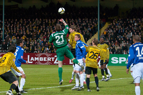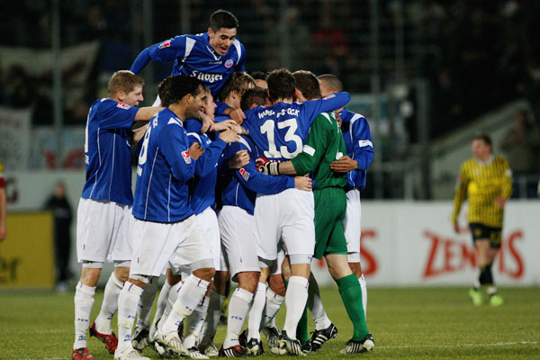 Als Finn Bartels in der 75 Minute das 3:1 erzielte, schien die Partie endgültig gelaufen. Dabei sollte den 18726 Zuschauern noch ein dramatisches Finale bevorstehen. Lewis Holtby mit einem Freistoß, dafür, dass noch einmal Hoffnung aufkeimte, als er einen Freistoß zum 2:3 verwandelte (81.). Die Rostocker Verunsicherung war spätestens wieder da, als sich Holtby den Ball drei Minuten vor dem Ende zurechtlegte: Der Ball segelte in den Sechzehner, Hrvoje Vukovic setzte sich mit dem Kopf durch und drückte das Leder mit voller Wucht zum glücklichen 3:3-Endstand über die Line.