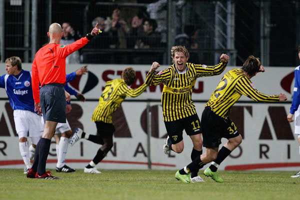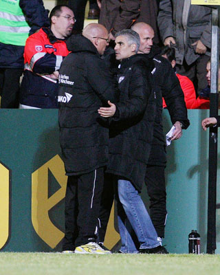 Sechs Tore, eine rote Karte und eine Mannschaft, die sich mit aller Macht gegen die Niederlage stemmte - das erste Heimspiel im neuen Jahr bot ausreichend Gesprächsstoff. „Das war ein Punkt für unserer Moral“, erklärte Torschütze Benny Auer. „Wir haben zu zehnt in einer Halbzeit drei Tore erzielt. Das ist positiv“, meinte Cristian Fiel. Dennoch sei das Ergebnis glücklich zu Stande gekommen. „In der ersten Halbzeit haben wir kein Mittel gegen die Rostocker gefunden“, so der Spanier. „Die haben hier ein tolles Spiel aufgezogen“, zollte Jerômé Polenz dem Gegner Respekt. Der Verteidiger gab sich selbstkritisch: „Bei der Roten Karte war ich einfach zu spät dran. Trotzdem fand ich den Platzverweis überzogen, zumal es mein erstes Foul überhaupt war.“ Nach der Hinausstellung nahm sich die Mannschaft in der Kabine viel vor und schaffte trotz des 0:2 kurz nach dem Seitenwechsel die Wende. „Die Mannschaft hatte in den letzten Monaten Probleme ein Spiel zu drehen. Das war heute die Initialzündung“, sagte Benny Auer.