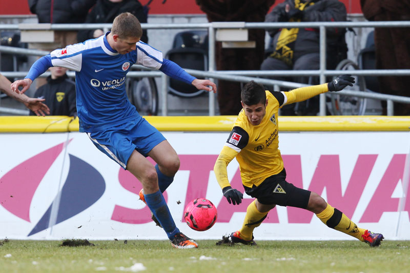 Tobias Feisthammel: Der Platz war heute kaum zu bespielen. Schon beim Warmmachen haben wir gemerkt, dass ein Fußballspiel auf diesem Platz nur schwer möglich sein wird. Der Schiedsrichter hat es sich letztlich nach 40 Minuten anders überlegt. Die ganze Partie über war es sehr schwierig für beide Mannschaften. Flache Bälle waren kaum machbar, wir haben die Kugel meist lang gespielt. Dadurch war es dann eine reine Glückssache und das ist ärgerlich. Ich bin mir sicher, dass wir Rostock heute unter normalen Bedingungen geschlagen hätten, denn wir sind spielerisch stärker.