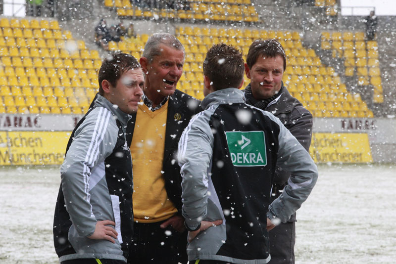 Friedhelm Funkel: Ich habe in 40 Jahren selten so eine Einigkeit zwischen allen Verantwortlichen erlebt wie heute vor dem Spiel. Wir waren alle der Meinung, dass die Bedingungen durch den starken Schneefall irregulär waren. Der Schiedsrichter war aber anderer Meinung. In der ersten Halbzeit hatten die Spieler überhaupt keinen Stand, ein geordnetes Aufbauspiel war überhaupt nicht möglich. Wir einen glasklaren Elfmeter nicht bekommen, der Schiedsrichter wird das erkennen, wenn er die Szene noch einmal im Fernsehen sieht. Ich kann meinen Spielern keinen Vorwurf machen, sie haben alles versucht, was möglich war. Einerseits bin ich froh, dass wir heute nicht durch ein Zufallstor verloren haben, andererseits hätten wir mit Blick auf die Tabelle natürlich gerne gewonnen. Mit Düsseldorf, Paderborn und Fürth haben wir jetzt drei schwere Gegner. Aber die Mannschaft ist so gefestigt, dass mir davor überhaupt nicht bange ist.