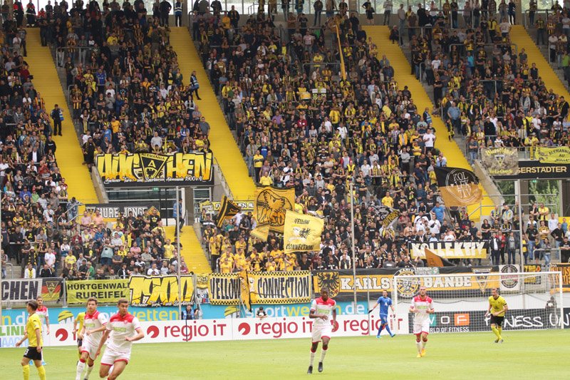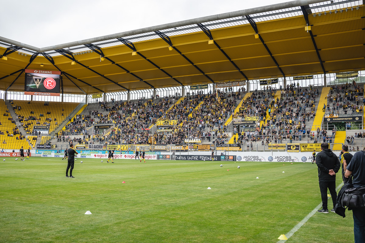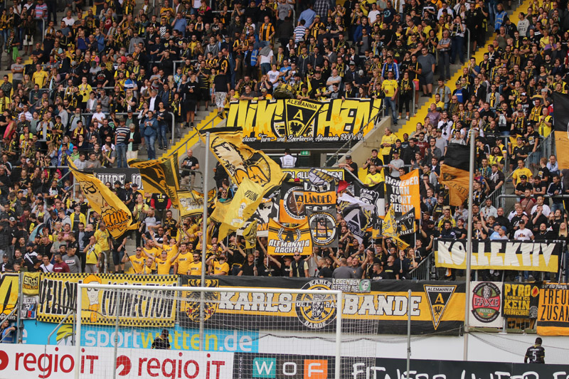 Kartenverkauf am Spieltag: Am Spieltag sind Tickets für Alemannia-Fans von 10 bis ca. 12:15 Uhr zum Vorverkaufspreis im Fanshop und danach an den Kassen im Nordosten, Südosten und Südwesten des Stadions erhältlich. Karten für Rollstuhlfahrer und für den Ehrenamtspass können an den Clearing-Stellen im Südosten und Südwesten gekauft werden. Im Südosten ist noch bis zur Halbzeitpause eine Spätkasse geöffnet. Die Schiedsrichterkasse befindet sich im Nordwesten und ist von ca. 13 Uhr bis 13:45 Uhr geöffnet, es werden dort Karten für den Block S6 ausgegeben. Business-Karten sind am Business-Eingang an der Sparkassen-Tribüne erhältlich.