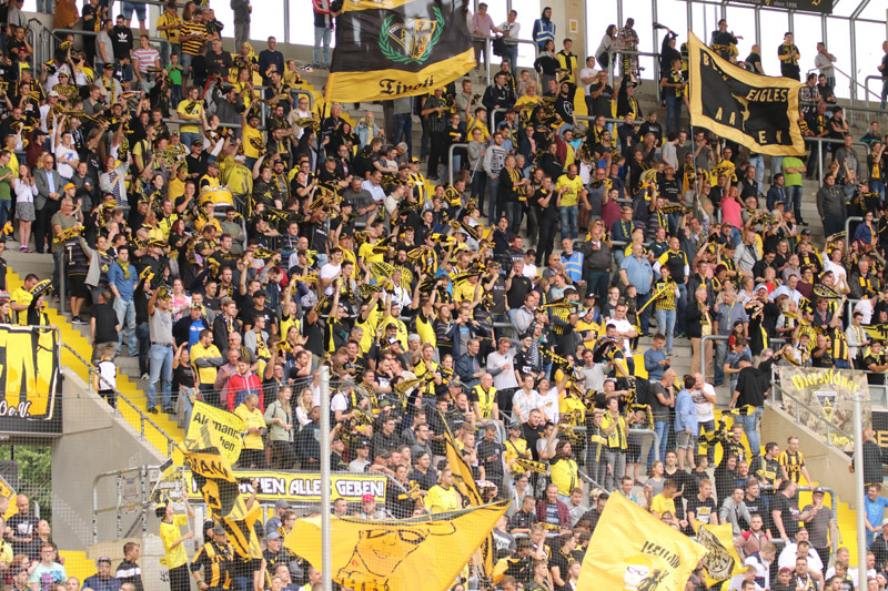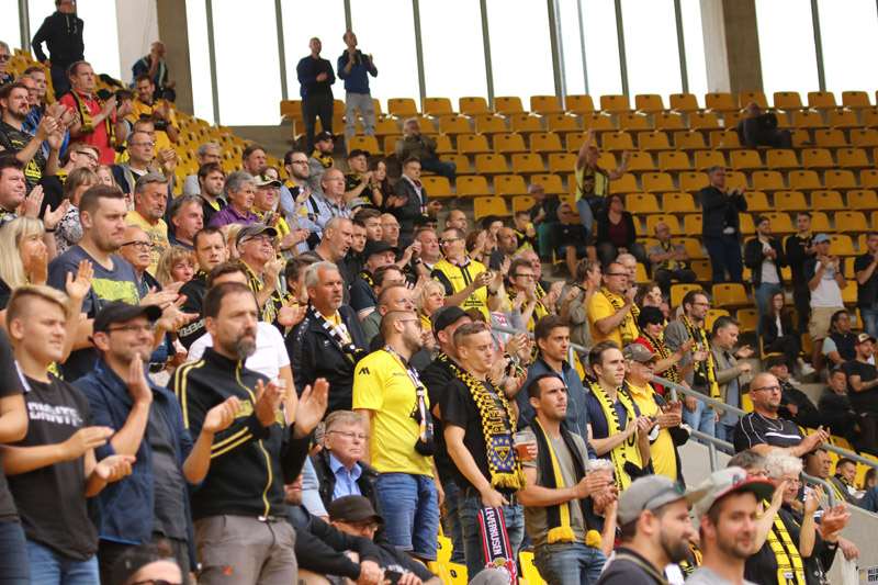 Verfügbare Blöcke: Geöffnet sind die Blöcke O4 bis O6 auf der Osttribüne, der gesamte Kaiserstädter Wall (S1 bis S6) sowie die Blöcke W1 und W2 auf der Sparkassen Tribüne. Für Gästefans ist der Block W4 geöffnet.