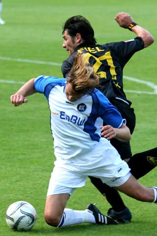 Und der Neuzugang von der SpVgg Greuther Fürth legte sogar noch einen drauf, wäre da nicht Schiedsrichter Henschel gewesen. Dundee rannte Thomas Stehle einfach um und fiel dann selber, während Rösler einen Kopfball über die Linie drückte. Fehlentscheidung Nummer 1. Beinahe hätte Mirko Casper (Hecking: „Er hat stark gespielt“) in seinem ersten Spiel von Beginn an mit einem sehenswerten Flugkopfball die Entscheidung besorgt. Auf der anderen Seite dann Fehlentscheidung Nummer 2. Plaßhenrich wurde aus kürzester Distanz angeschossen, was Henschel mit einem Handelfmeter ahndete. Trotz aller Proteste verwandelte Dundee zum schmeichelhaften Ausgleich (83.).