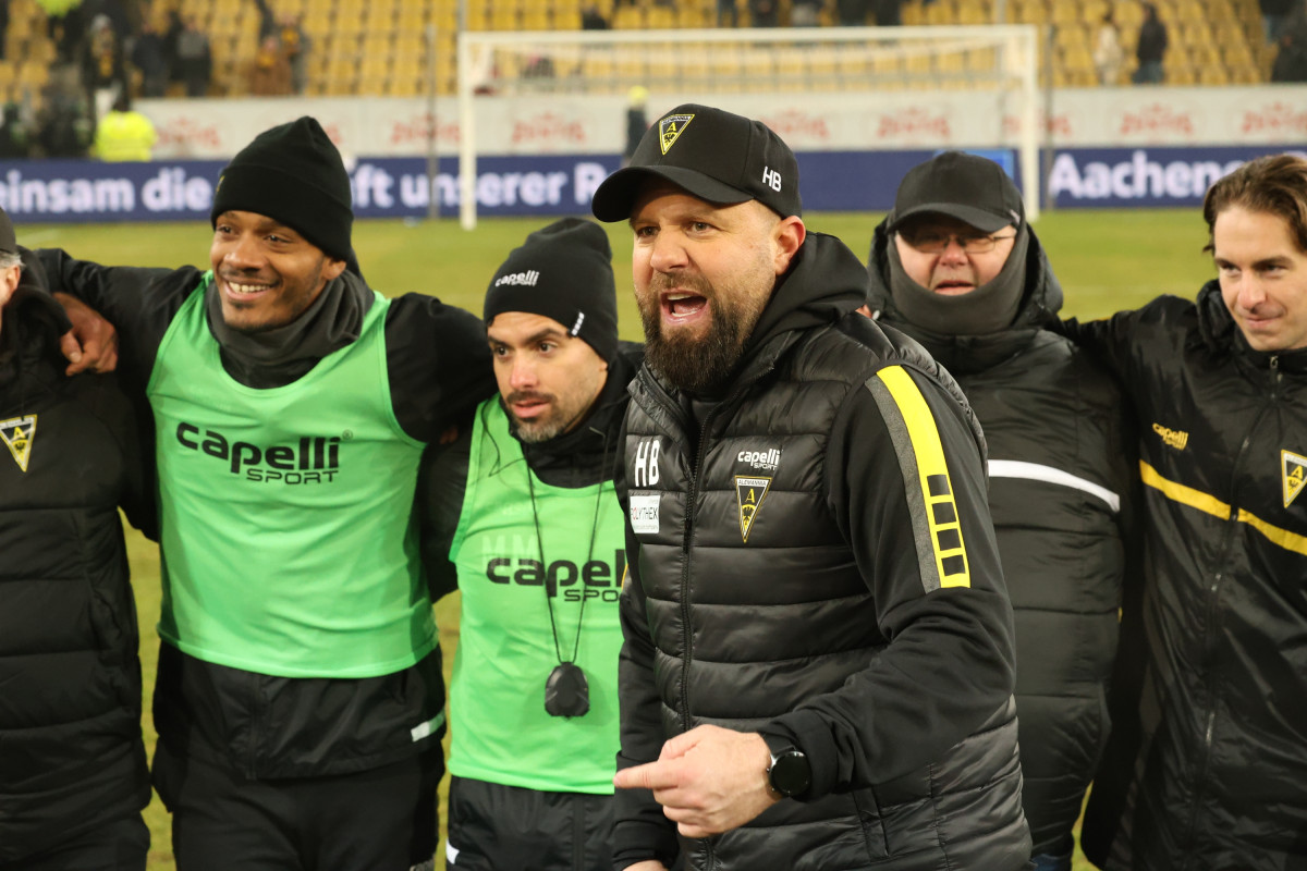 Doch Personalien hin oder her: Die Schwarz-Gelben wissen genau, dass ihnen in ihrer größten Stärke, dem Kollektiv, kaum eine Mannschaft etwas vormachen kann. „Es wird darum gehen, dass wir uns gemeinsam mit den Fans gegen diesen individuell sehr gut besetzten Gegner wehren“, erläutert Backhaus einen Teil des Matchplans. Dank des getauten Schnees sei mit einem tiefen Boden zu rechnen – „da werden wir sehen, wer hinten raus die größere Ausdauer besitzt“, schaut der Trainer der Kaiserstädter voraus. RWE, das auf dem Tivoli fast schon unter Zugzwang steht, wird begleitet von gut 3000 Anhängern nach Aachen reisen, das Stadion ist mit über 31.000 Fans selbstredend ausverkauft. „Darauf freuen wir uns enorm“, sagt Backhaus, der lediglich auf den angeschlagenen Innenverteidiger Lamar Yarbrough verzichten muss.