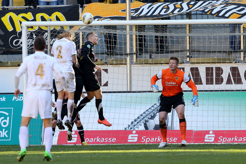 Trotz Bemühungen auf Seiten der Alemannia ging das erste Tor der Partie an die Gäste aus Wiesbaden. Ivana gelang es sich frei zulaufen und einen Pass von Wohlfarth mit einem Schuss ins linke Eck zur 0:1 Führung zu verwandeln – die erste richtige Chance der Partie wurde dadurch genutzt (67.). Trainer René van Eck nahm daraufhin gleich zwei personelle Veränderungen in seiner Elf vor. Zunächst verließ Stehle verletzungsbedingt die Partie, für ihn startete Sascha Herröder. Florian Müller kam für Timo Brauer ins Spiel. Eine weitere Aktion der Gäste konnte von Keeper Melka abgewehrt werden. Nachdem Wohlfahrt nicht angegriffen wurde und freie Bahn hatte, konnte der Aachener Keeper per Fußabwehr einen Führungsausbau verhindern (72.).