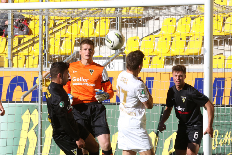 Beide Teams zeigten sich von Beginn an kämpferisch und waren darauf bedacht, möglichst schnell ein Tor zu erzielen. Die Jungs vom Tivoli waren es, die nach nur wenigen Minuten schon ihre erste Torchance hatten. Nachdem Heller sich am rechten Flügel durchsetzen konnte, flankte er auf Pozder. Die scharfe Hereingabe verpasste der junge Angreifer nur knapp (3.). Die Alemannen zeigten weiterhin Kampfgeist, jedoch erwiesen sich die Gäste aus Wiesbaden als ein nicht zu unterschätzender Gegner. Die Schwarz-Gelben konnten sich in der Anfangsphase zwar das ein oder andere Mal gegen die Hessen durchsetzen, ein Führungstreffer blieb jedoch aus.