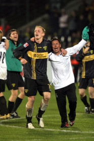 Die Botschaft ist klar: Alemannia ist noch nicht durch. Auch wenn der Nichtaufstieg immer unwahrscheinlicher wird und Aachen vor dem Spieltag die Tabelle anführte, will Hecking immer noch nichts vom Erreichen des Ziels wissen. „Noch ist nichts passiert, bis zum Aufstieg müssen wir noch ein paar Spiele gewinnen.“ Auch Jörg Schmadtke fordert noch zehn Punkte aus den verbleibenden sieben Spielen. Weil noch ein paar Mosaiksteine fehlen, entzog sich der Sportdirektor auch der ausgelassenen Feier mit den Fans im Ludwigsparkstadion. „Das hat nichts mit Arroganz oder Überheblichkeit zu tun. Die Unterstützung unserer Fans war auch in Saarbrücken wieder überragend, und wenn wir endgültig aufsteigen, feiere ich liebend gern mit ihnen“, so der Manager.