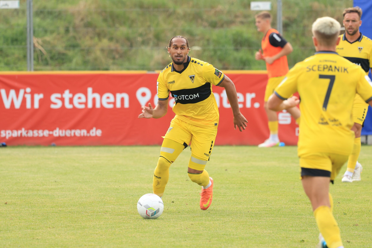 Alemannia Aachen setzte sich in der 1. Runde des Bitburger-Pokals souverän mit 6:1 gegen den 1. FC Düren aus der Mittelrheinliga durch. Zwar gingen die Hausherren durch Philipp Simon früh in Führung (5.), doch Gianluca Gaudino per Elfmeter (25.) sowie Otschie Wriedt (45.) drehten das Spiel noch vor der Pause. In den zweiten 45 Minuten trieben Faton Ademi (49.), Emmanuel Elekwa (59.), erneut Wriedt (63.) und Lukas Scepanik (67.) das Ergebnis weiter in die Höhe.