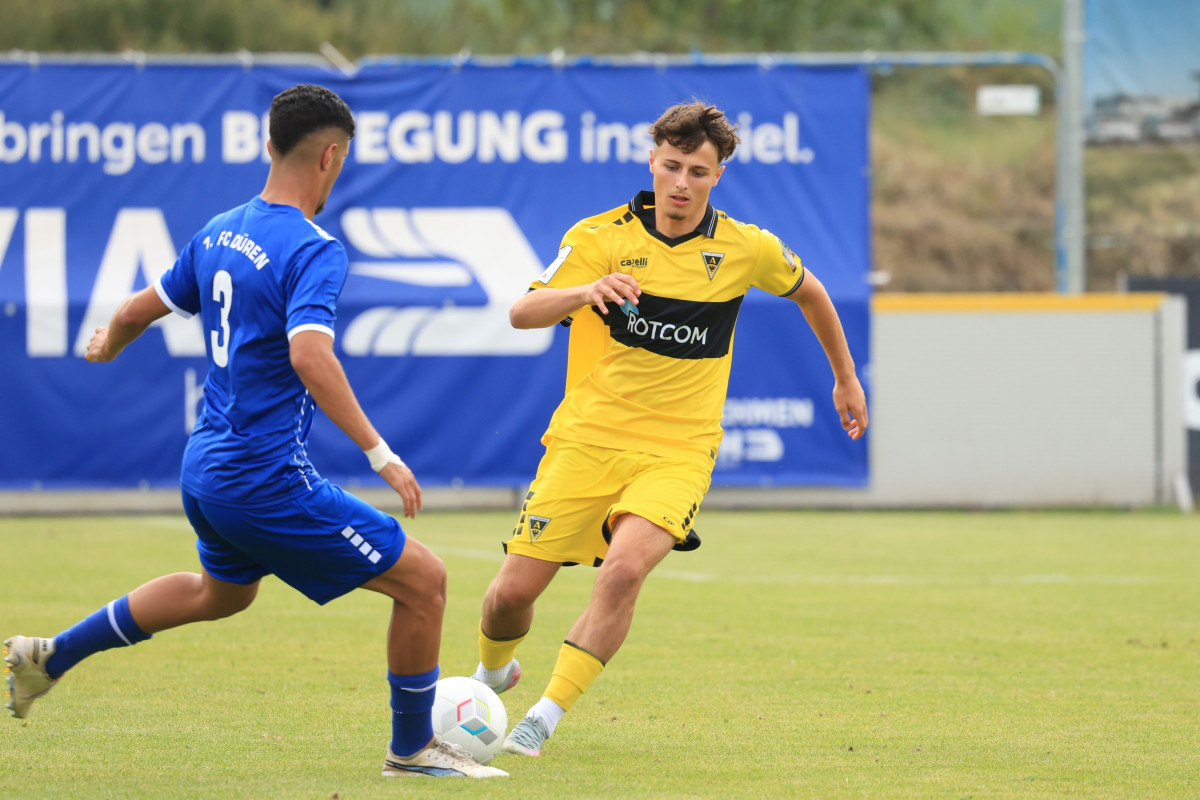 In den zweiten 45 Minuten bot sich den 2.200 anwesenden Fans dann aber ein anderes Bild: Die Kaiserstädter waren nun klar tonangebend und drückten auf die Entscheidung. Und das erste Tor der 2. Halbzeit sollte auch schnell fallen: Lukas Scepanik hatte viel Platz auf der rechten Seite des Dürener Sechzehners, behielt die Übersicht und bediente Faton Ademi, der zum 3:1 einschob (49.).