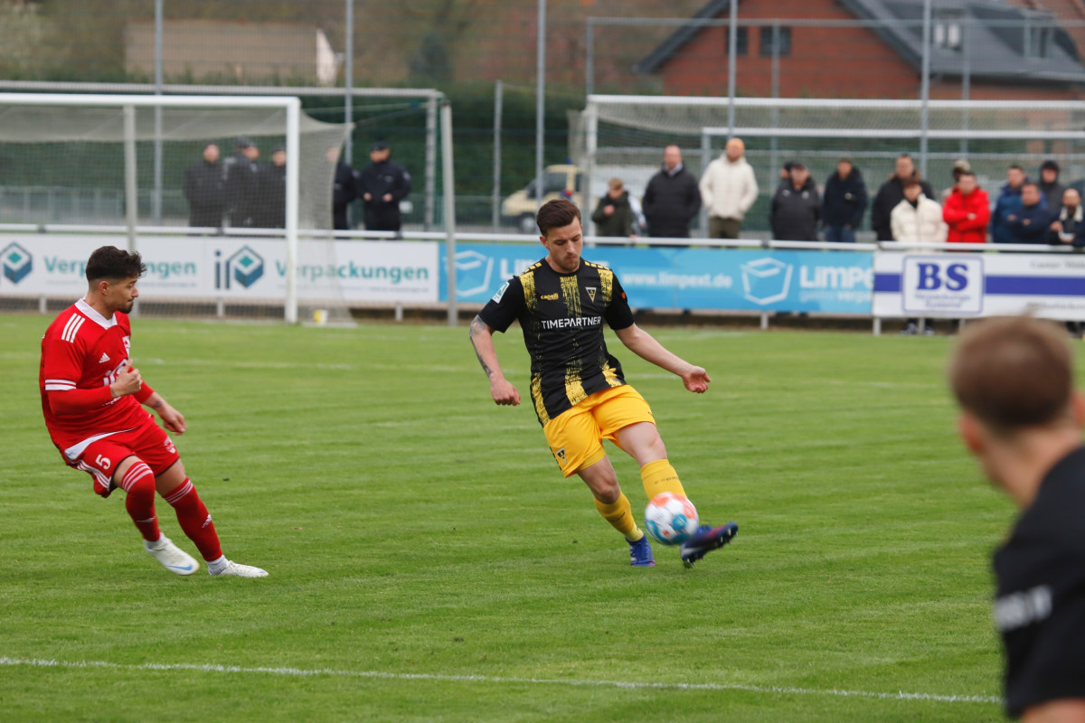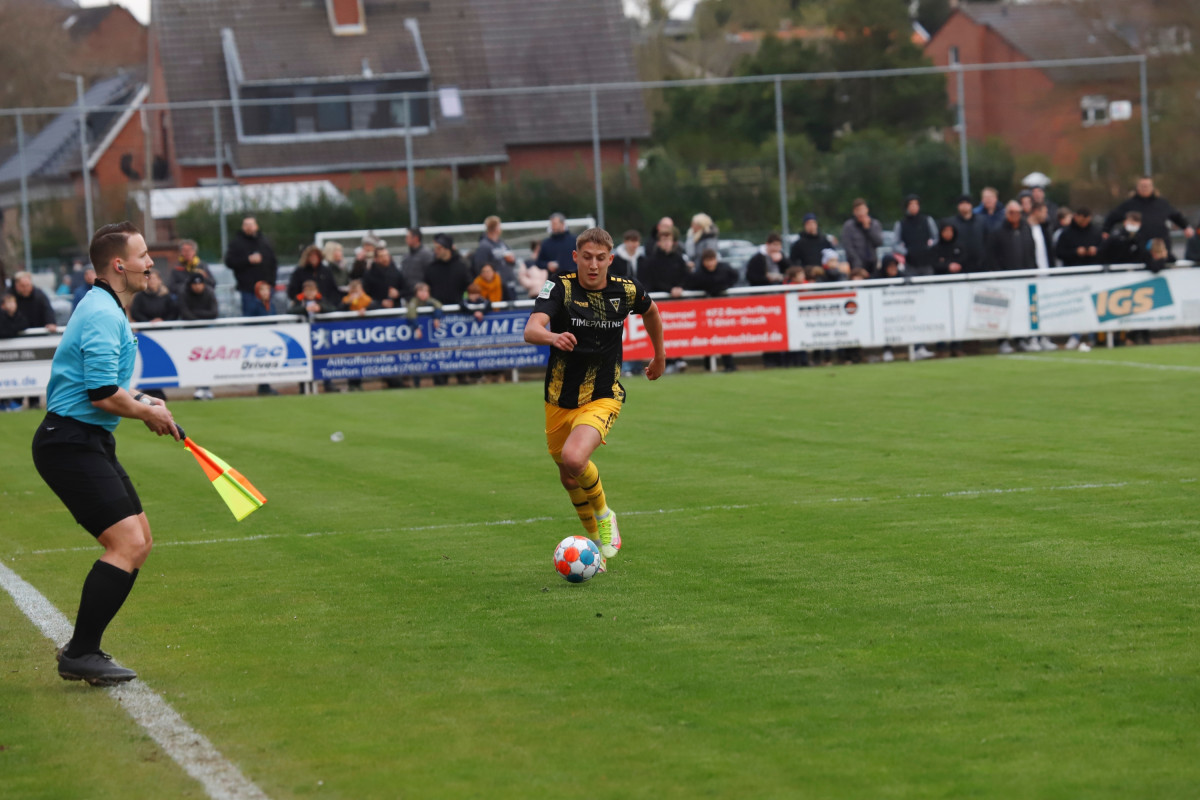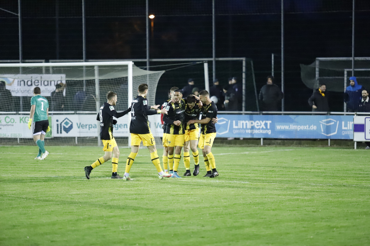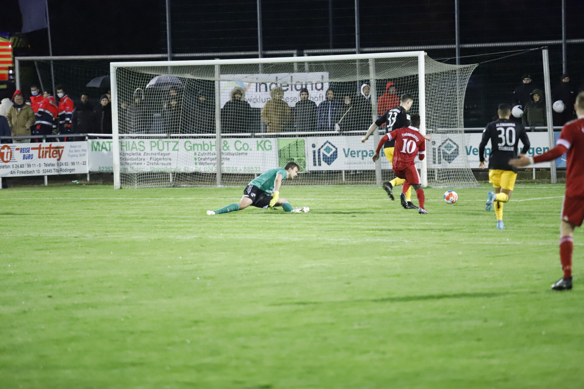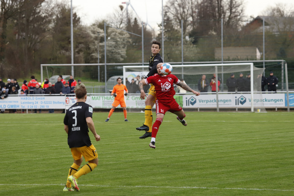 Einen erfreulichen Moment gab es für das Alemannia-Lager bereits vor dem Anpfiff: Freddy Baum, der lange mit einer Knieverletzung ausfiel, sollte sein bereits ewig herbeigesehntes Comeback geben – und das direkt in der Anfangsformation, er agierte gemeinsam mit Peter Hackenberg in der Innenverteidigung. Seit dem 1. Juni hatte der Defensivmann kein Spiel mehr bestritten. Mit Baum und zudem fünf weiteren Startelfänderungen im Vergleich zur Niederlage gegen den SV Rödinghausen startete der Favorit beim Fünften der Mittelrheinliga wie erwartet aktiv und schnell den Weg nach vorne suchend ins Spiel. Den ersten Akzent setzte Yildiz, der nach Pass von Tim Korzuschek ein Tor erzielte, jedoch im Abseits stand (6.). Während die von Kevin Kruth trainierten Gastgeber anschließend um Absicherung bemüht waren, bekam die Alemannia zunehmend Überwasser. Korzuschek ließ in der 26. Minute die erste dicke Möglichkeit liegen, als er nach einer Linksflanke von Lars Oeßwein freistehend am stark aufgelegten Borussia-Keeper Alexander Monath scheiterte. Im Anschluss ebbte der Druck wieder etwas ab, ohne dass jedoch die Gastgeber ihrerseits einmal gefährlich vor dem Tor von Joshua Mroß auftauchten. „Wir haben bis auf das Gegentor das ganze Spiel über nichts zugelassen“, beobachtete Trainer Fuat Kilic, der dann kurz vor der Pause doch noch jubeln durfte: Korzuschek führte eine Linksecke per Variante aus und bediente Yildiz an der Strafraumkante. Der Mittelstürmer zog ab, sein Schuss senkte sich genau zwischen Monath und den Pfosten in die rechte Ecke – 0:1 (44.). Kurz darauf hätte Jannis Held noch vor dem Seitenwechsel erhöhen können, er scheiterte aber bedrängt von Aboudoul Rachid Tchadjei im Eins-gegen-Eins-Duell mit Monath (45.+2). So ging es mit einer knappen Führung in die Pause.