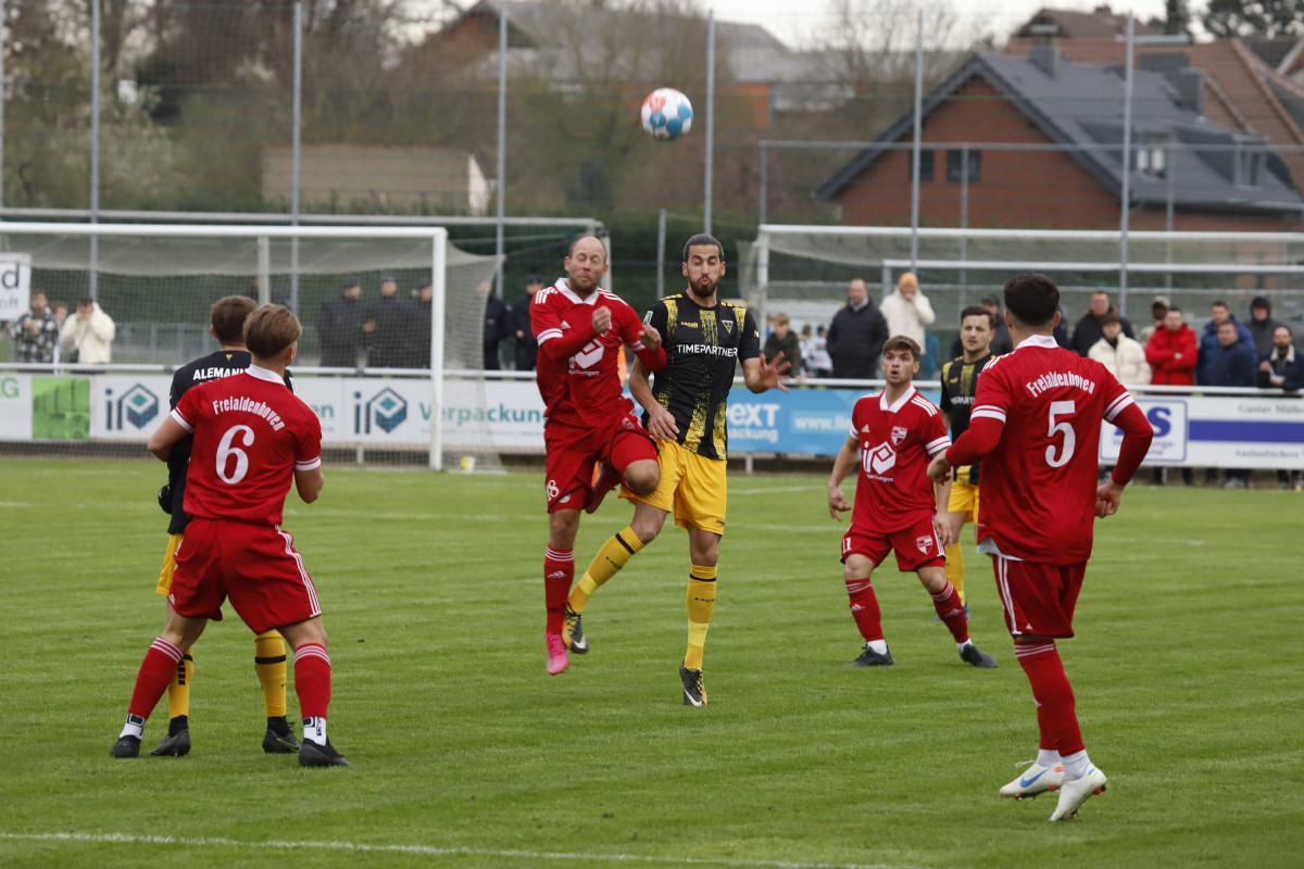 Als Tabellenfünfter führt Borussia Freialdenhoven das Mittelfeld des Klassements in der Mittelrheinliga an. Die Generalprobe ging am letzten Freitag im Schneegestöber von Siegburg auf der Zielgeraden noch mit 4:2 verloren, nachdem die Borussen zuvor einen frühen 0:2-Rückstand egalisieren konnten. Mit Armand Drevina, Pascal Schneider, Christos Draganidis, Niklas Koppitz, Rachid Tchadjei und Fabian Nießen stehen insgesamt sechs Ex-Alemannen im Kader des Gegners. „Das ist eine sehr erfahrene Truppe, die sich seit Jahren in der Mittelrheinliga etabliert hat. Wir haben vor drei Jahren gesehen, wie eng es zugehen kann, als wir schlussendlich erst in der Nachspielzeit den Deckel drauf gemacht haben“, fordert Fuat Kilic von seinen Jungs volle Konzentration.