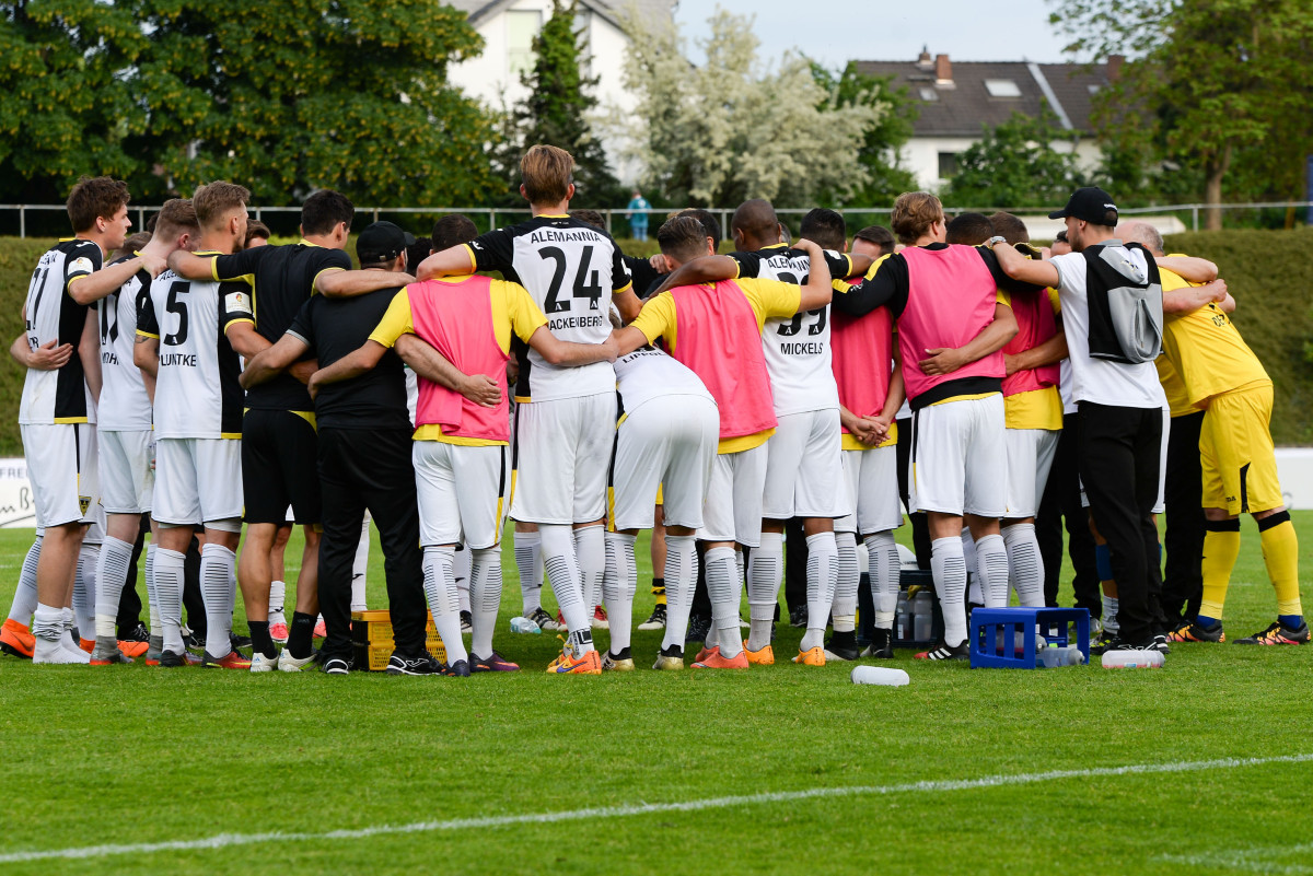 Die Alemannia steht am Ende eines packenden Pokalfinales leider mit leeren Händen da. Über 120 Minuten hatten die Schwarz-Gelben der favorisierten Kölner Viktoria einen packenden Fight geboten und mussten sich am Ende durch zwei Treffer in der zweiten Halbzeit der Verlängerung unglücklich mit 0:2 geschlagen geben. Gut 4.000 mitgereistes Fans unter den 5.478 Zuschauern hatten auf den Rängen für Heimspielatmosphäre gesorgt.