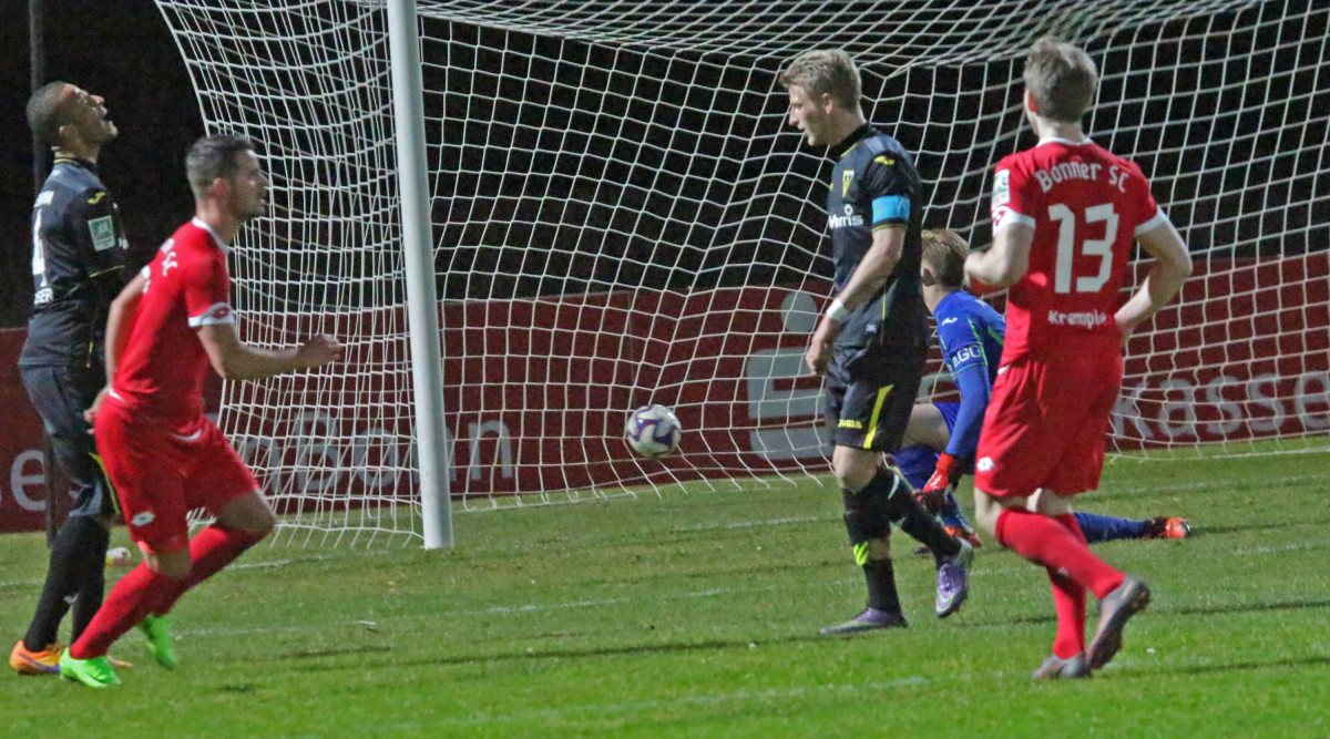 Die Alemannia hat am 23. Spieltag der Regionalliga West ihre höchste Saisonniederlage kassiert. Beim Bonner SC unterlagen die Schwarz-Gelben am Freitagabend im Flutlichtduell nach einer äußerst schwachen Vorstellung vor 2.100 Zuschauern mit 0:4 (0:2).