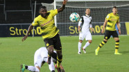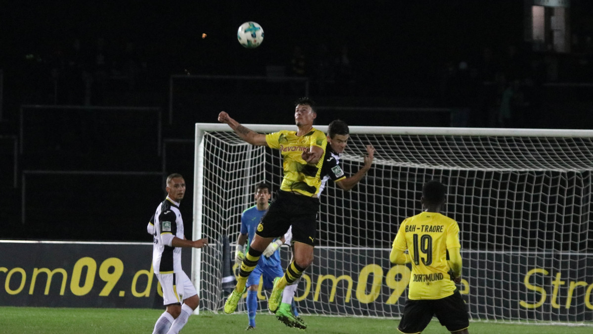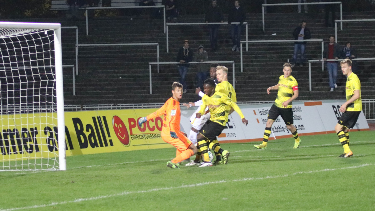 Bei der Alemannia gab es eine Änderung in der Anfangsformation und die betraf die Torhüter-Position. Patrick Nettekoven erhielt den Vorzug gegenüber Mark Depta. Die erste Gelegenheit ging nach fünf Minuten auf das Konto des spielstarken Spitzenreiters. Profi-Leihgabe Sancho setzte sich am linken Flügel durch und servierte für Serra. Heinze konnte den Angreifer aber noch entscheidend an einem erfolgreichen Abschluss hindern. Auf der Gegenseite nutzen die Alemannen ihre erste Chance eiskalt zur Führung. Mohr schlug einen Ball hinter die Dortmunder Abwehrreihe. Torunarigha ging nach, umkurvte Bansen und schob zum 0:1 ein (8.). Die Alemannia verteidigte in der Folgezeit konsequent und ließ den Gegner nicht zur Entfaltung kommen. Nach vorne setzte die Kilic-Elf immer wieder Nadelstiche. Mohr marschierte über links und flankte scharf vors Tor. Torunarigha grätschte in den Ball, kam aber eine Fußsohle zu spät (32.). Mit einer Standardsituation bauten die Aachener ihren Vorsprung noch vor dem Seitenwechsel aus. Mohr zirkelte einen Freistoß von rechts in den Strafraum. Damaschek schraubte sich hoch und überwand Bansen per Kopf zum 0:2 (38.).