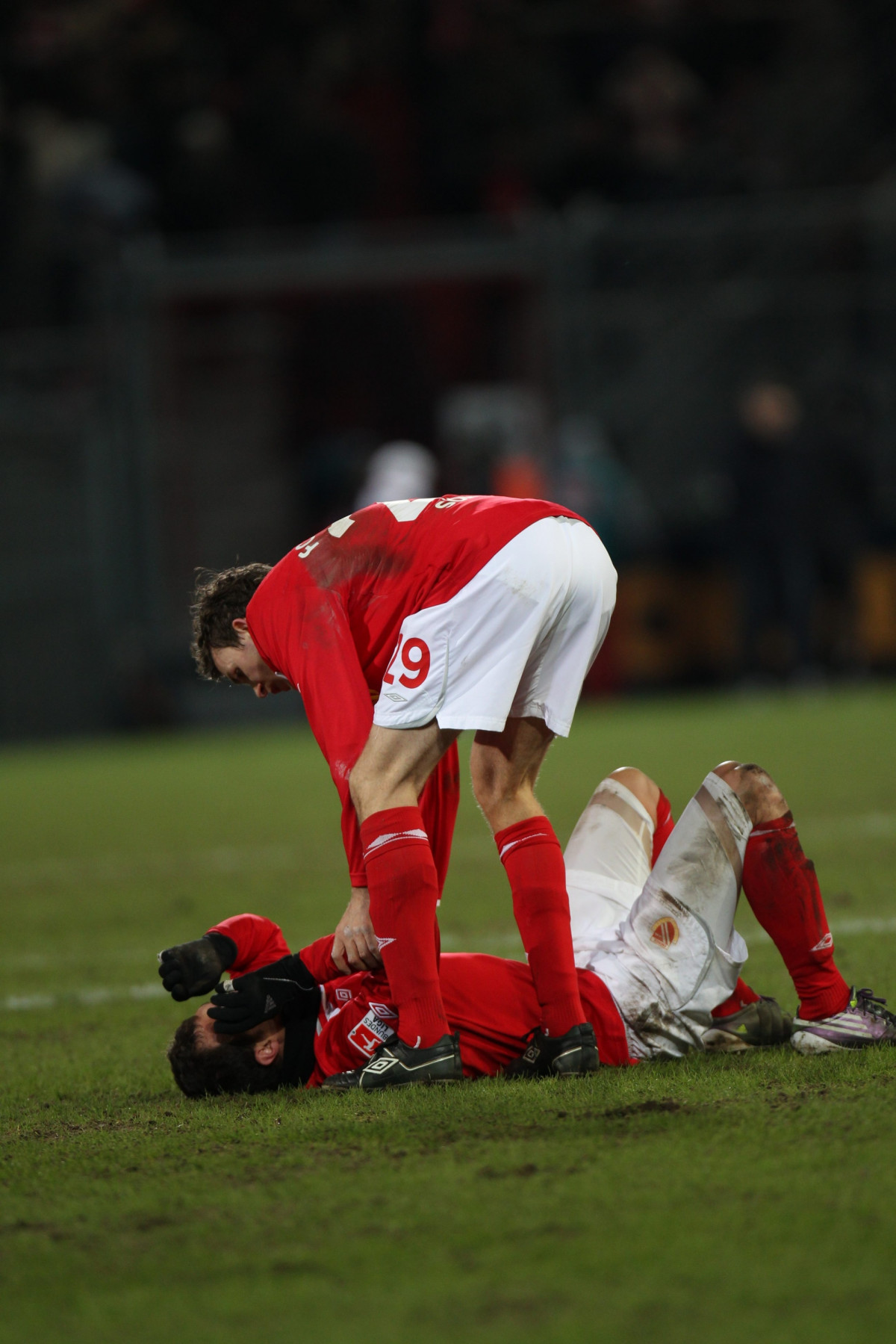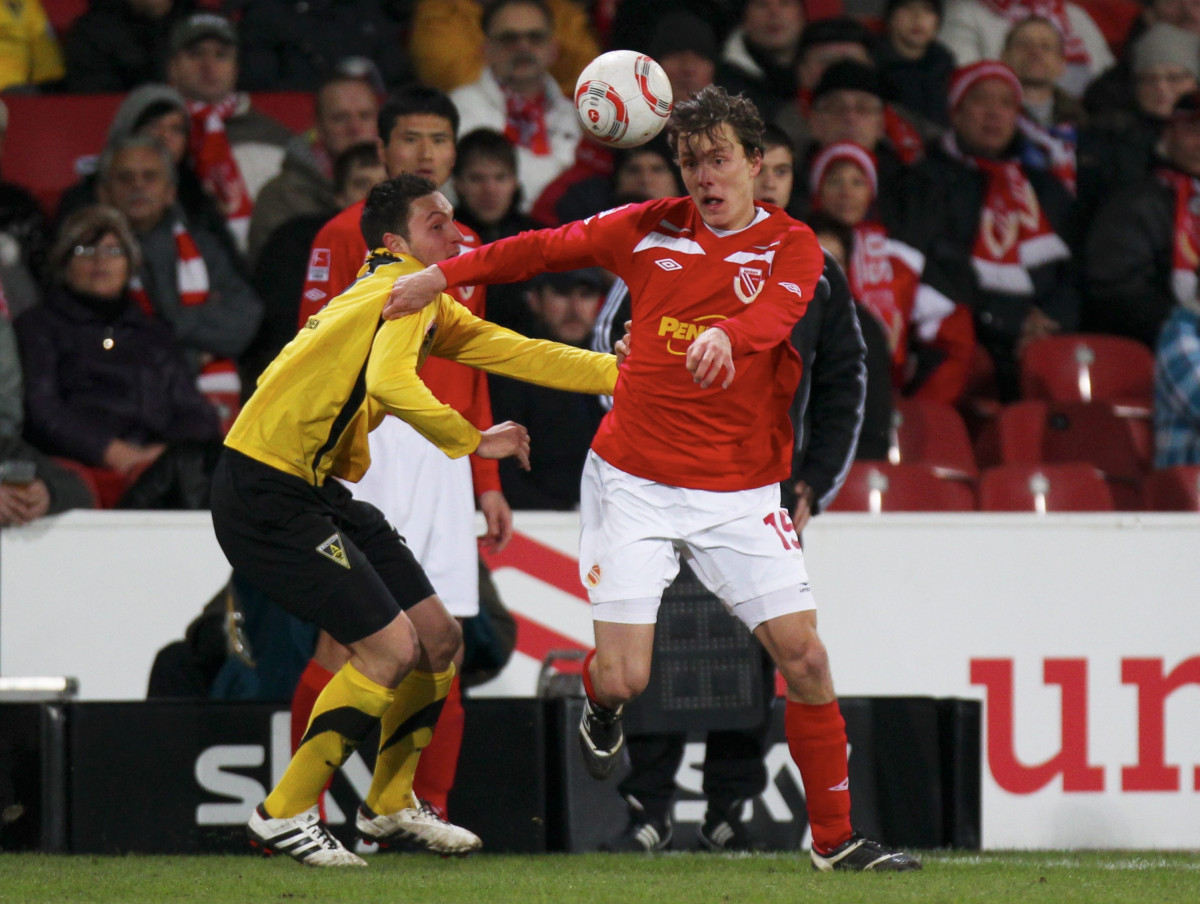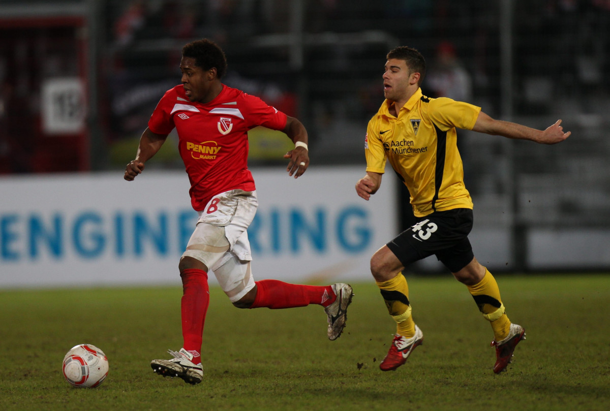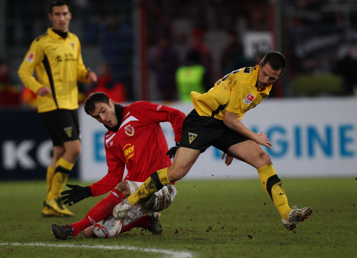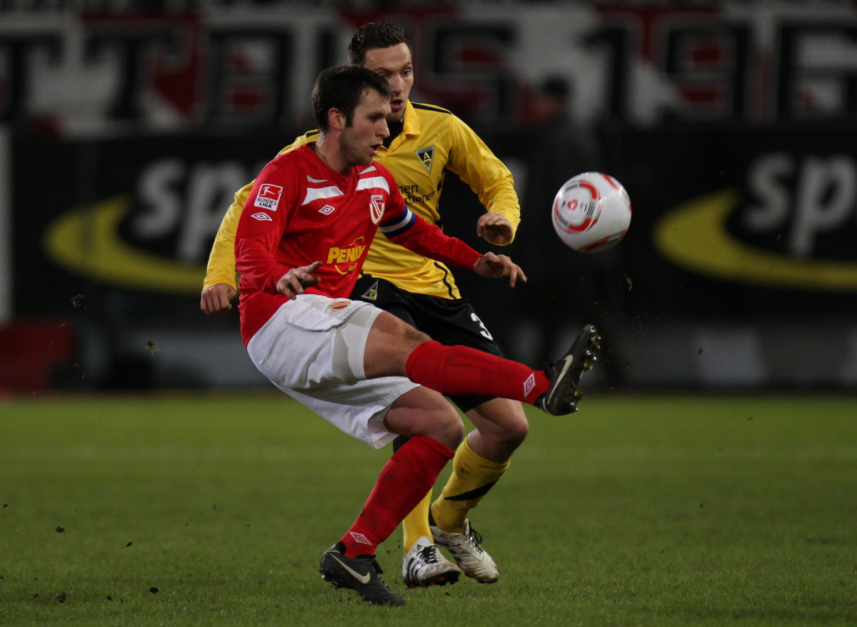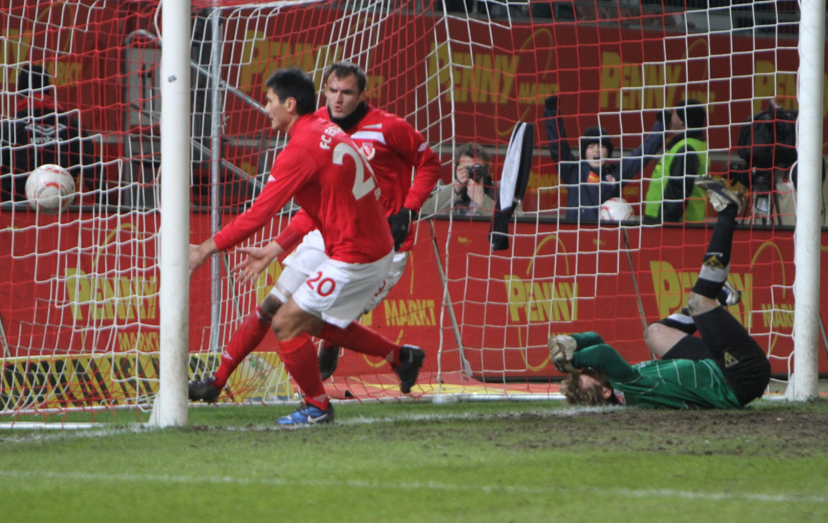 In den vergangenen Jahren war das Stadion der Freundschaft kein gutes Pflaster für die Schwarz-Gelben, der letzte Dreier gelang in der Erstligasaison 2006/2007. Doch die Tivoli-Kicker ließen sich davon in der Anfangsphase nicht beeindrucken und kamen richtig gut in die Partie. Arslans ersten Schuss lenkte Renno zur Ecke, wenige Sekunden später verzog Junglas nur knapp vom Strafraumeck (3.). Schwarz-Gelb nutze den Schwung der ersten Minuten, und wie: Nach einem Einwurf erhielt Kratz die Kugel, zog aus knapp 25 Metern per Spannschuss ab und ließ die Alemannia früh auf fremdem Geläuf jubeln – Renno lenkte den tollen Distanzschuss nur noch ins obere Netz (8.).