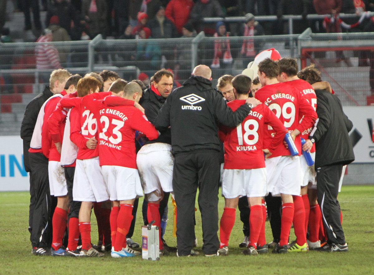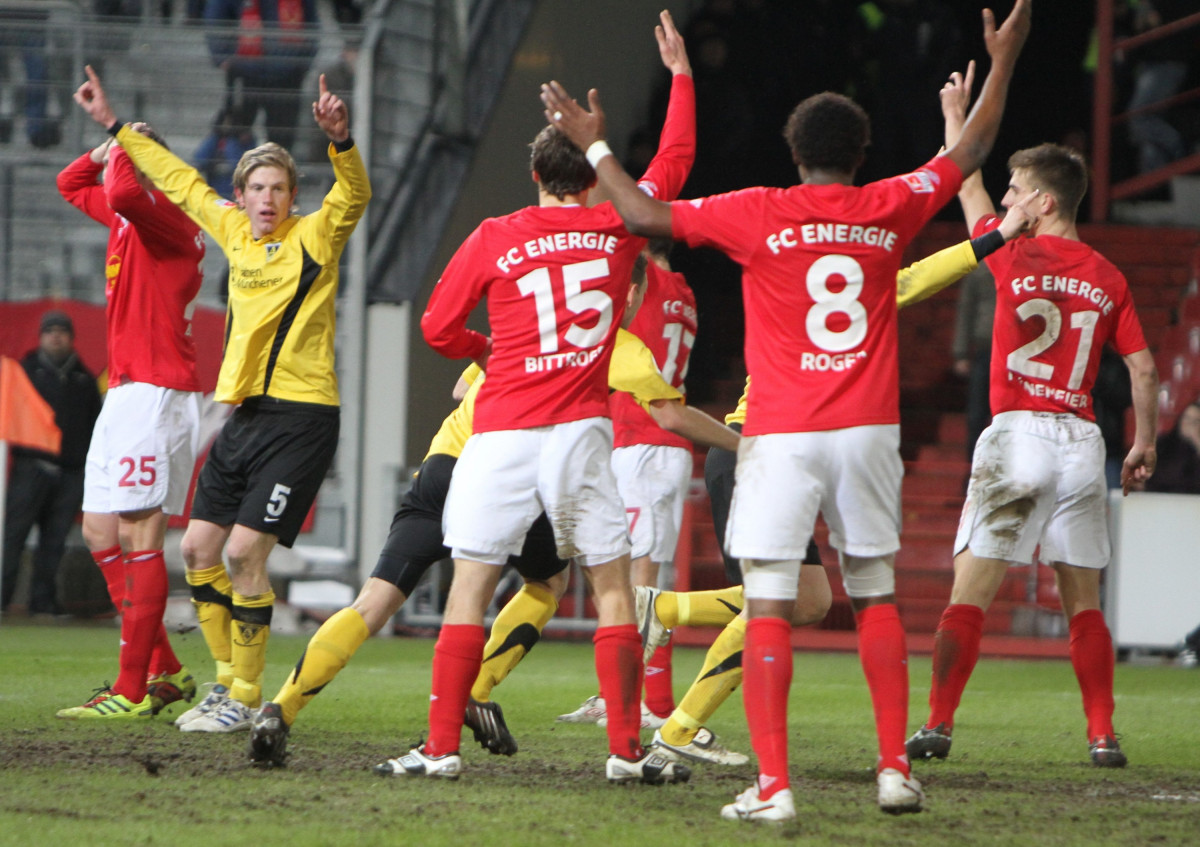 FC Energie Cottbus: Renno – Bittroff, Hünemeier, Brzenska, Ziebig – Reimerink (55. Shao), Roger (60. Sörensen), Kruska, Adlung (81. Jovanovic) – Petersen, Jula / Trainer: Claus-Dieter Wollitz