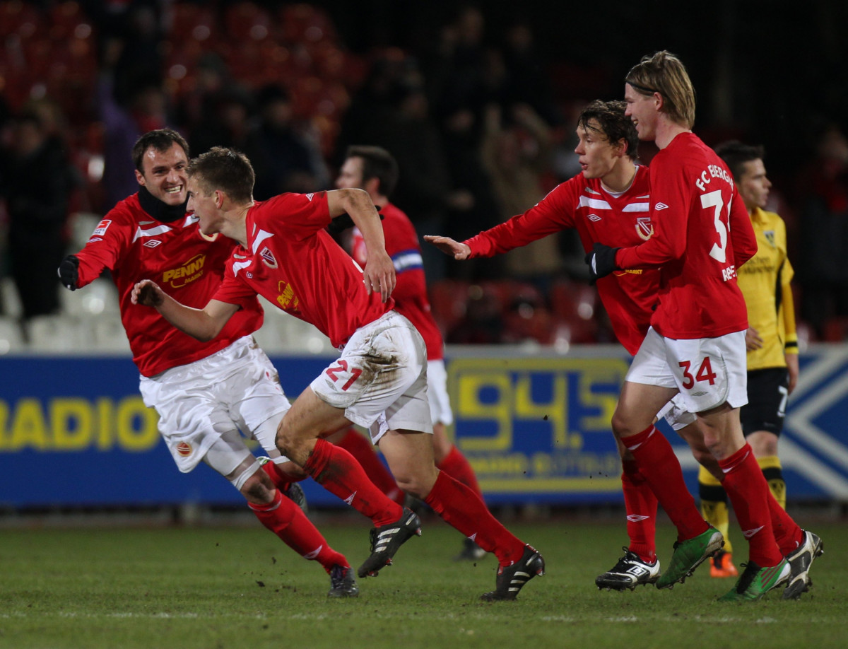 Die Partie war rassig, intensiv und spektakulär: Erst scheiterte Petersen an Hohs, auf der Gegenseite markierte Auer die erneute Führung: Högers Kopfball landete nach einer Ecke bei Casper, dessen Schuss von Jula zunächst auf der Linie geblockt wurde, ehe Auer zum 1:2 abstaubte (29.). Jubelte gerade noch Schwarz-Gelb, freute sich im nächsten Moment Rot-Weiß: Junglas verlor den Ball gegen Roger, dessen Schuss aus 16 Metern unglücklich von Feisthammel abgefälscht wurde. Der Ball senkte sich über Hohs hinweg ins Netz – 2:2 (32.).