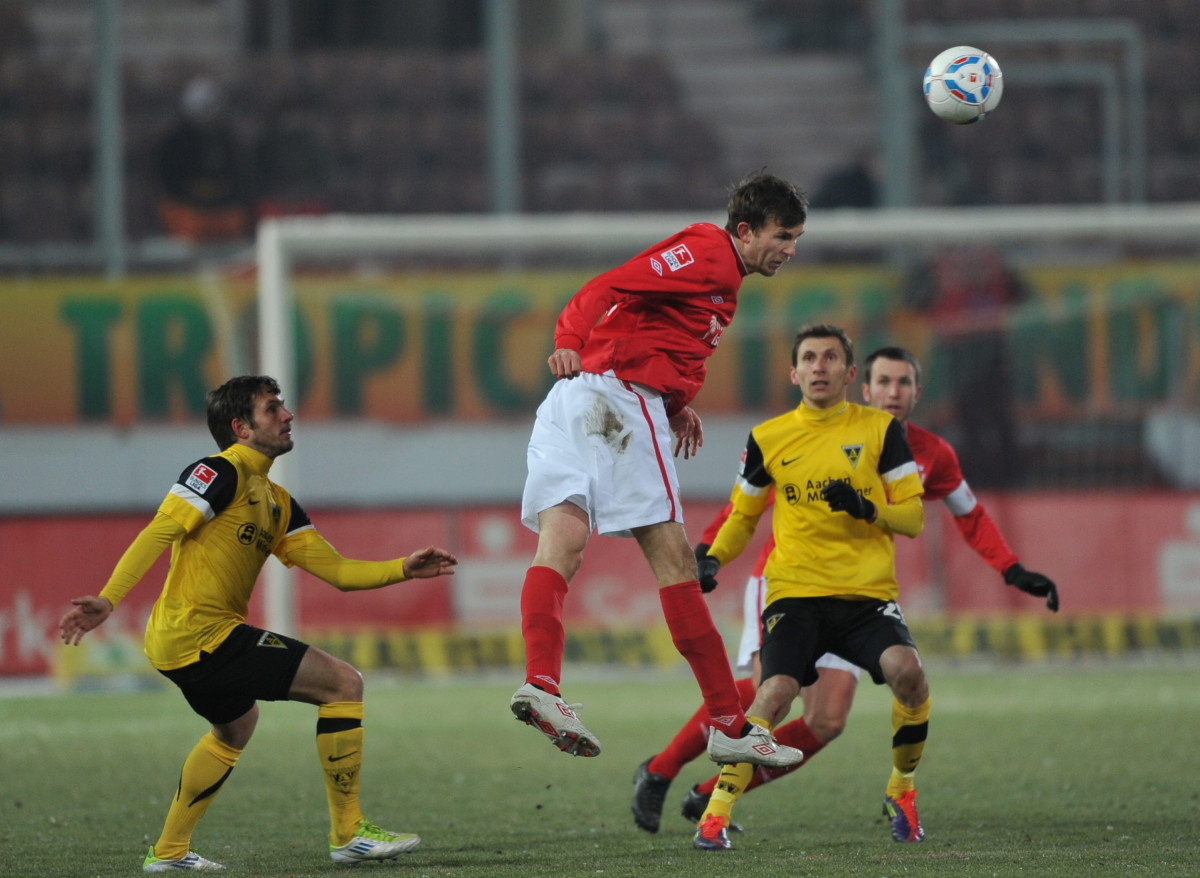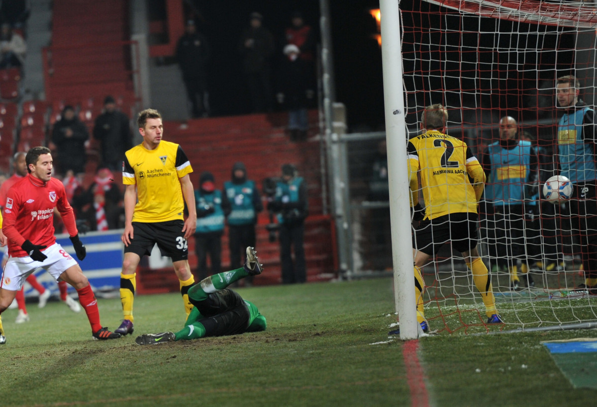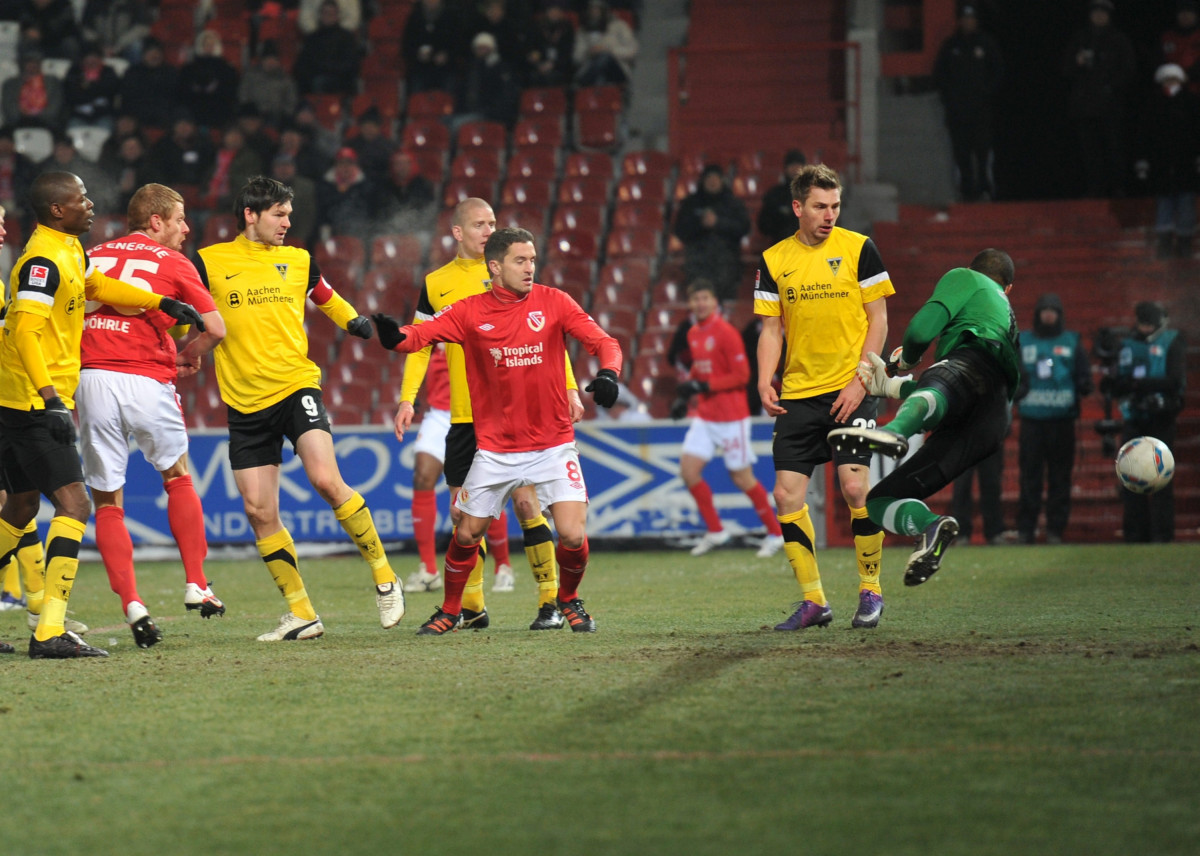 Auch im zweiten Pflichtspiel des Jahres 2012 ging die Alemannia nicht leer aus und nahm am Freitagabend nach einem 1:1-Remis gegen den FC Energie Cottbus einen Zähler aus der Lausitz mit. Auf schwerbespielbarem Platz kamen beide Teams im ersten Durchgang kaum zu klaren Torchancen, anders nach dem Wechsel: Tobias Feisthammel markierte nach einem Freistoß von Achenbach seinen dritten Saisontreffer und brachte die Alemannia damit in Führung (50.). Benny Auer verpasste Sekunden später per Kopf das 0:2, ehe die Gastgeber nach einer Ecke durch Möhrle ausglichen (53.). Die Lausitzer agierten im Anschluss druckvoller, den Punkt ließ sich die Alemannia am Ende jedoch nicht mehr aus der Hand nehmen und bleibt damit im sechsten Spiel in Folge ungeschlagen.