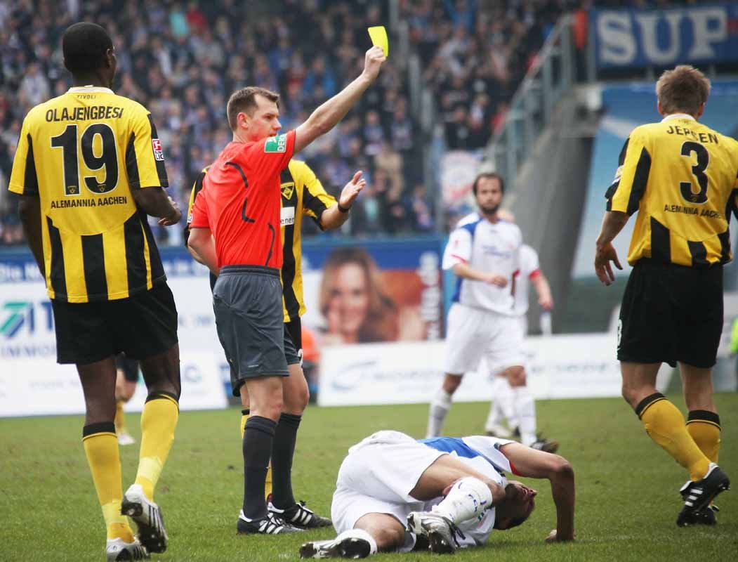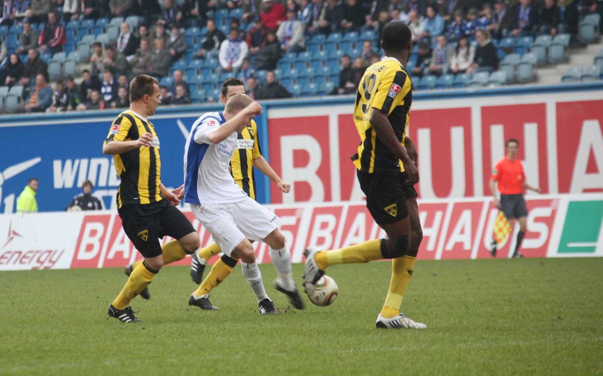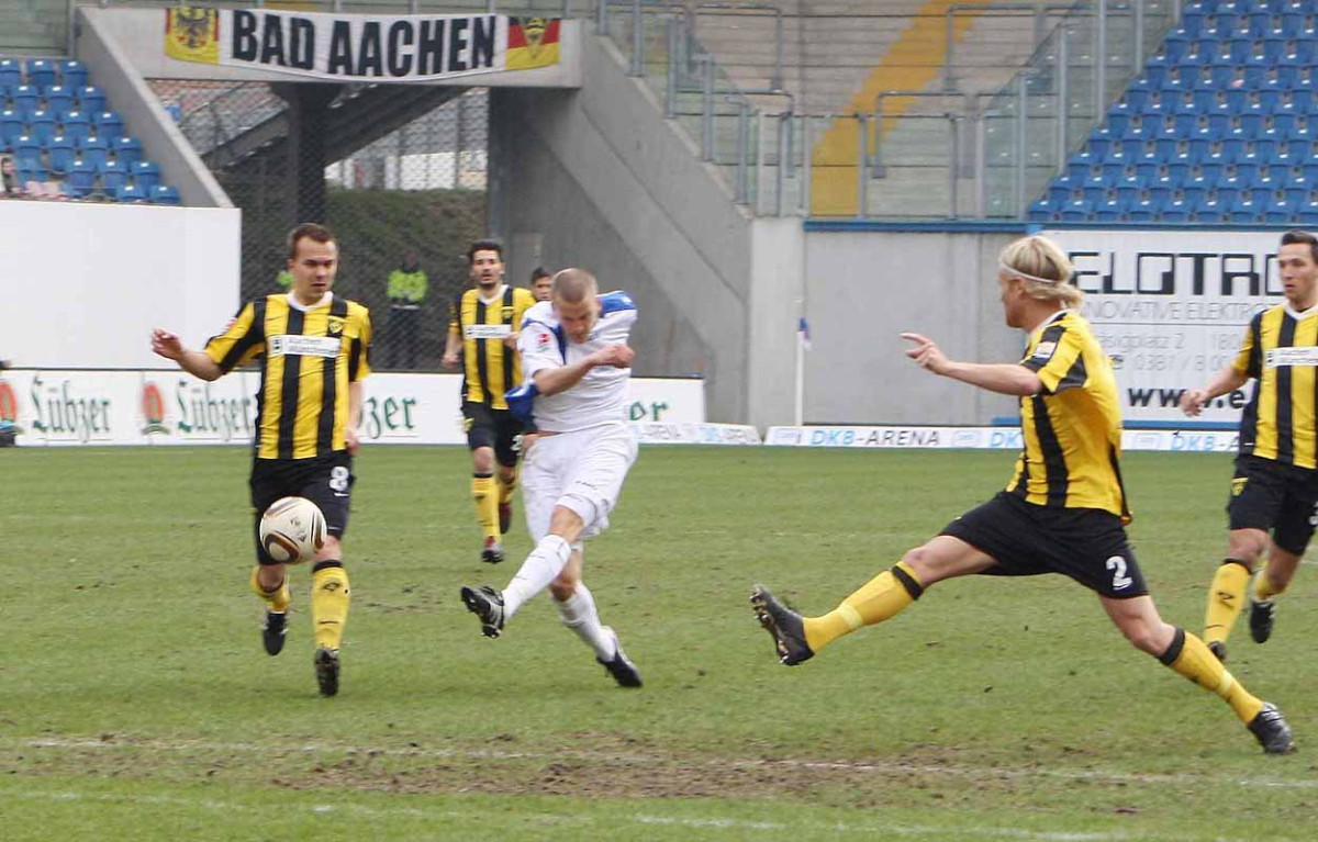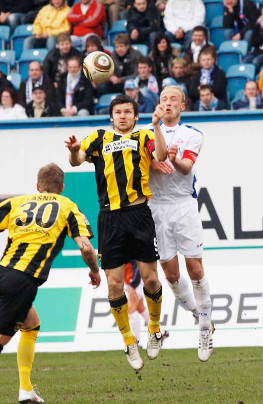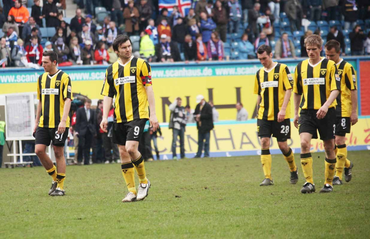 Wie so oft folgte bei der Alemannia auf eine gute Leistung eine schwache. Nach zuletzt drei Spielen ohne Niederlage enttäuschten die Schwarz-Gelben am Sonntag auf der ganzen Linie und unterlagen dem FC Hansa Rostock völlig verdient mit 0:2. Ein Doppelschlag von Gardar Johannsson (6., 58.) besiegelte die Niederlage. Erst in der Schlussphase waren Aachener Chancen zu registrieren. Drei Minuten vor dem Ende erzielte Benny Auer den Anschlusstreffer – Schiedsrichter Florian Steuer wähnte den Angreifer aber im Abseits.