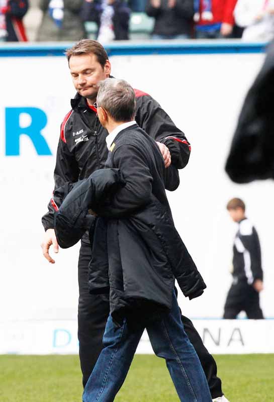 Die Reaktion der Schwarz-Gelben ließ bis zur 66. Minute auf sich warten: Nach einer Lasnik-Ecke kam der Ball über Umwege zu Auer. Dessen Kopfball flog gut einen Meter über das Rostocker Gehäuse – die erste wirklich gute Chance des Nachmittags. Michael Krüger zog seinen letzten Trumpf und brachte Babacar Gueye für Alper Uludag. Doch auch der dritte Wechsel änderte nichts am Spielverlauf. Die Rostocker wirkten immer einen Tick konzentrierter, Danielsson verpasste freistehend die Entscheidung (74.). Hoffnung keimte noch einmal auf, als Nemeth eine Gueye-Flanke in Richtung Hansa-Kasten verlängerte. Walke war allerdings zur Stelle und verhinderte den Anschluss (80.). Die letzte Szene gehörte den Schwarz-Gelben – und tatsächlich lag der Ball diesmal im Netz: Schiedsrichter Florian Steuer wähnte Auer beim Anspiel von Özgen jedoch im Abseits (87.). Unter dem Strich muss die Alemannia nach schwacher Partie mit einer verdienten 0:2-Niederlage die Heimreise antreten.
