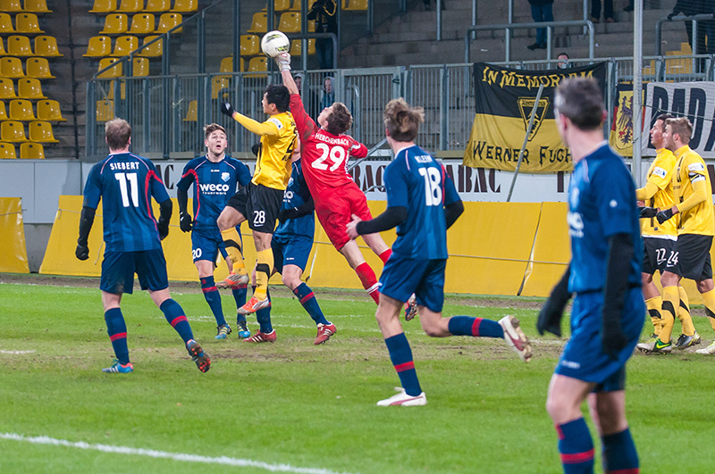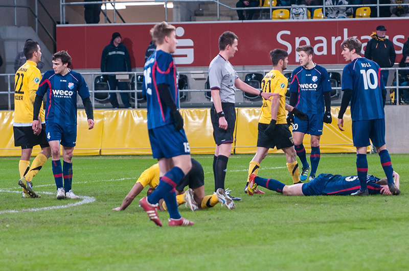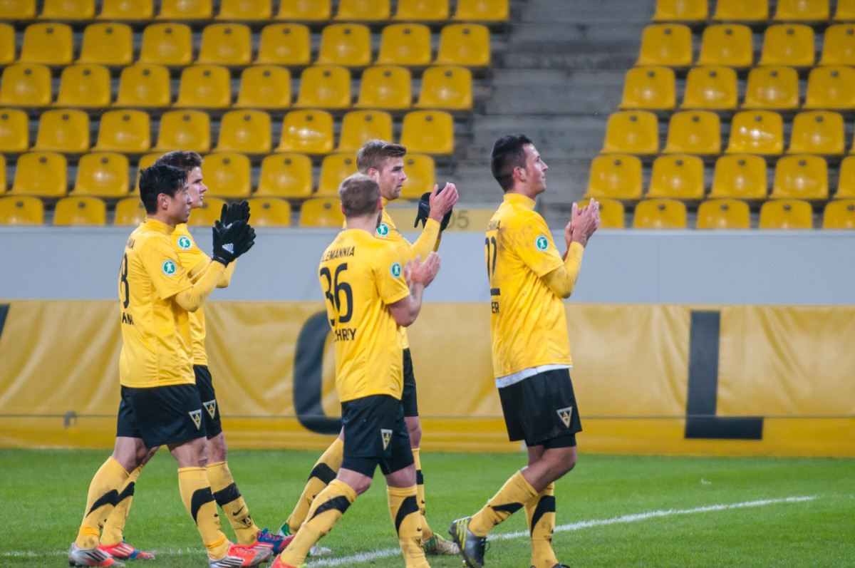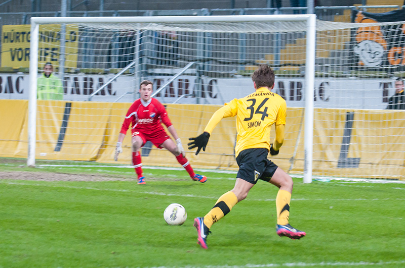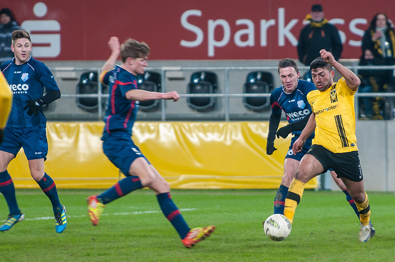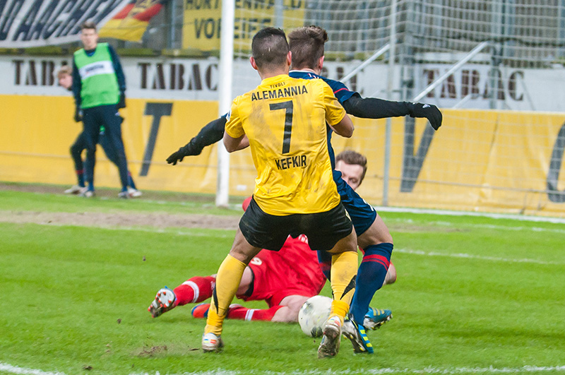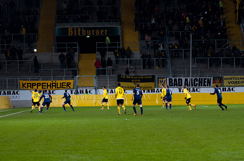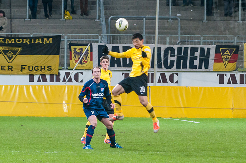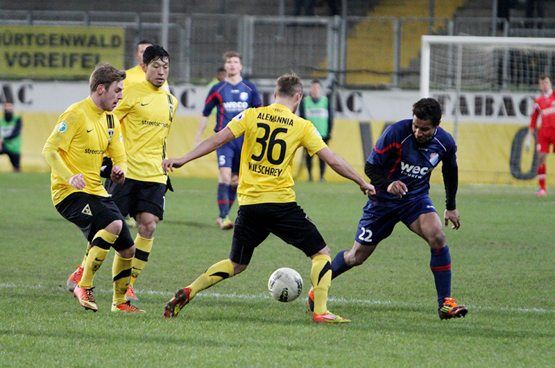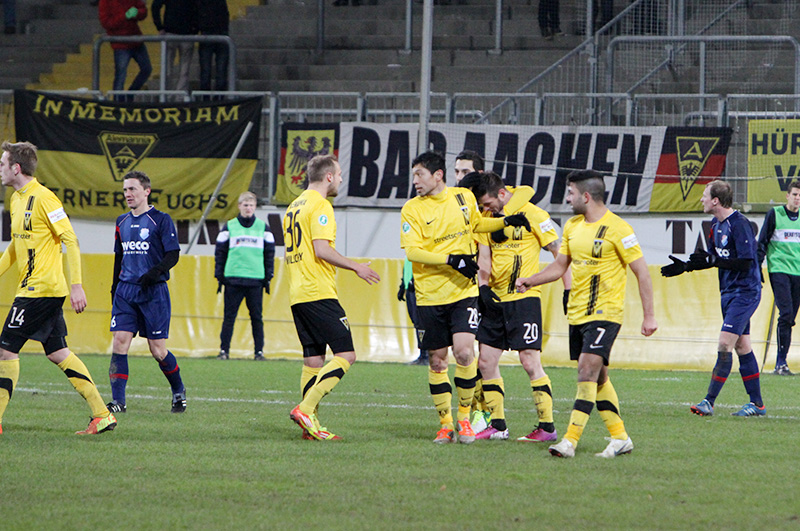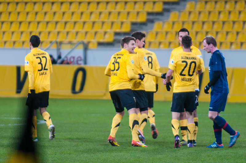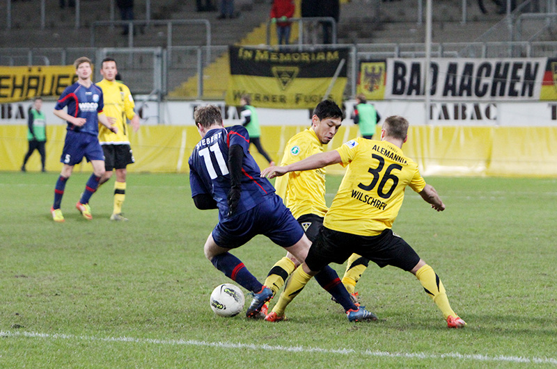 Alemannia Aachen: Flekken – Wilschrey, Erb, Herröder, Strujic – Lang (46. Garcia), Murakami – Heller, Schumacher, Kefkir (84. P. Simon) – Pozder / Trainer: René van Eck