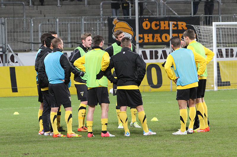 Nach der Spielabsage der Partie in Erfurt standen mit dem Trainerteam am Montag nur sieben spielberechtigte Feldspieler und drei Torhüter für eine intensive 75-minütige Trainingseinheit auf dem Platz. Für die anderen Akteure, die weder verletzt noch bettlägerig waren, gab es ein leichtes Anschwitzen unter Aufsicht von Athletiktrainer Janosch Emonts. So konnte René van Eck den anwesenden Medienvertretern beim Pressegespräch am Dienstagmittag auf Nachfrage berichten, dass ihm für die Pokalpartie am Mittwoch wohl voraussichtlich 15 einsatzfähige Akteure zur Verfügung stehen.