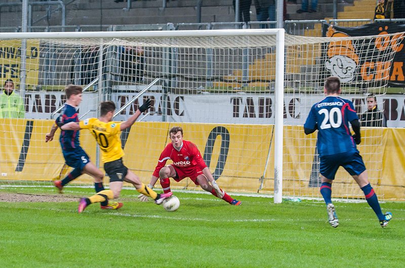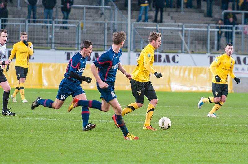 Zur Pause baute René van Eck um. Lang blieb in der Kabine, Schumacher rückte auf die Doppelsechs und Rafael Garcia agierte fortan offensiv. Nach fünf Minuten hätte sich der Wechsel beinahe bezahlt gemacht. Pozder hatte den Ball in den Rücken der Gästeabwehr gespielt und Garcia konnte mit links abziehen. Herchenbach entschärfte das Leder jedoch mit beiden Fäusten. Nur zwei Minuten später wurde Schumacher von Kefkir bedient. Der Torschütze zielte aus 14 Metern jedoch freistehend über das Tor (52). Die Vorentscheidung fiel nach einer guten Stunde. Heller zog am linken Flügel auf und davon, umkurvte Keeper Herchenbach und fand die Lücke zwischen zwei Verteidigern zum 2:0 (66.). Nur zwei Minuten später konnte der Gästekeeper einen 18m-Schuss von Schumacher noch um den Pfosten lenken. Um ein Haar hätten die Schwarz-Gelben anschließend ein Kontertor zum Anschluss kassiert. Günal lief alleine auf Flekken zu, doch der Niederländer rettete kurz vor der Torlinie (70.).