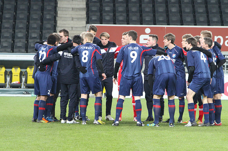 René van Eck standen für das Duell mit dem Tabellensiebten der Mittelrheinliga mit Unterstützung aus U23 und U19 insgesamt 14 Feldspieler und zwei Torhüter zur Verfügung. Vor Mark Flekken verteidigte mit Robert Wilschrey, Mario Erb, Sascha Herröder und Sasa Strujic die etatmäßige Abwehrkette. Davor agierten Norikazu Murakami und Dennis Lang defensiv sowie Dario Schumacher offensiv im Mittelfeld. Marcel Heller, Denis Pozder und Oguzhan Kefkir bildeten den Angriff.