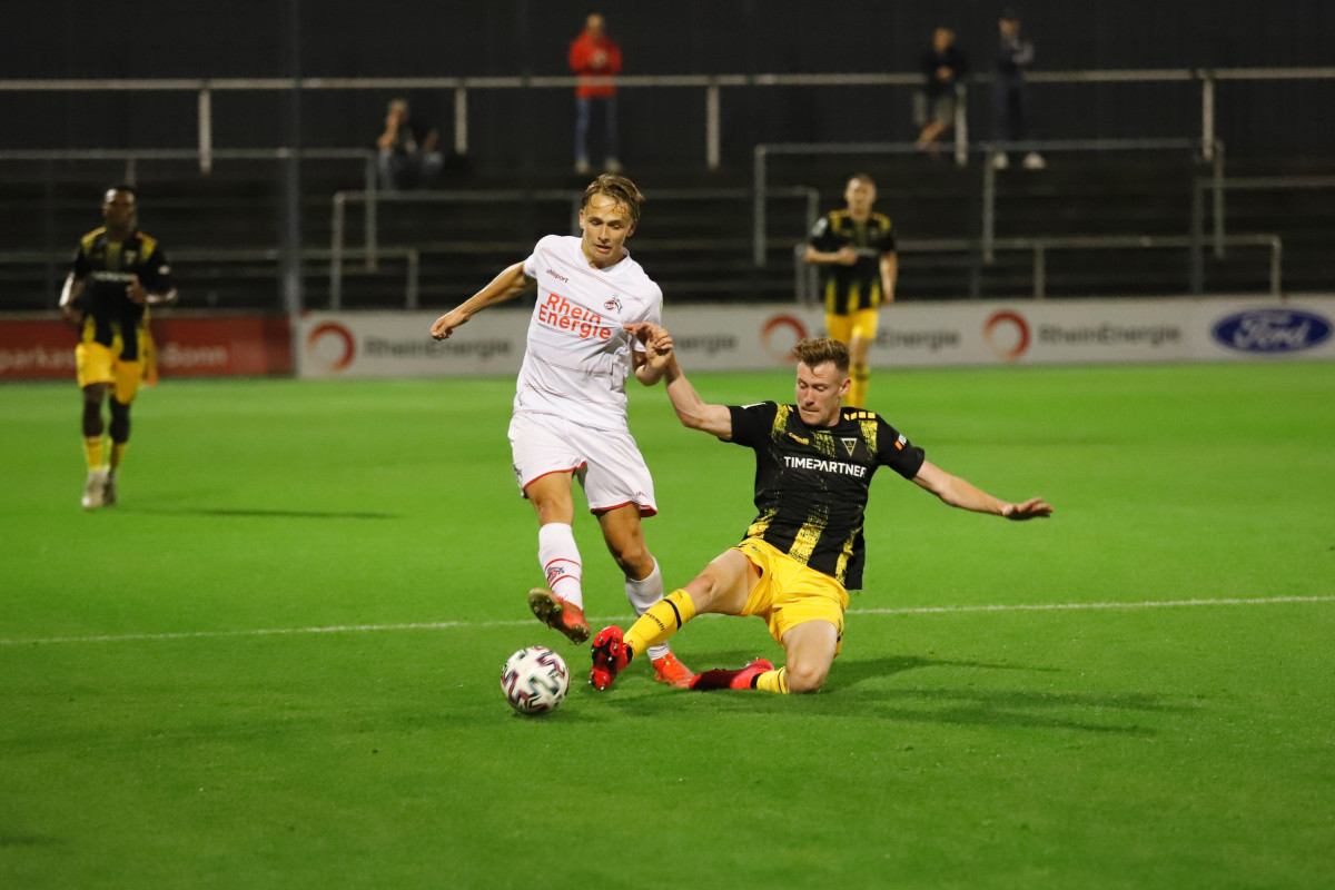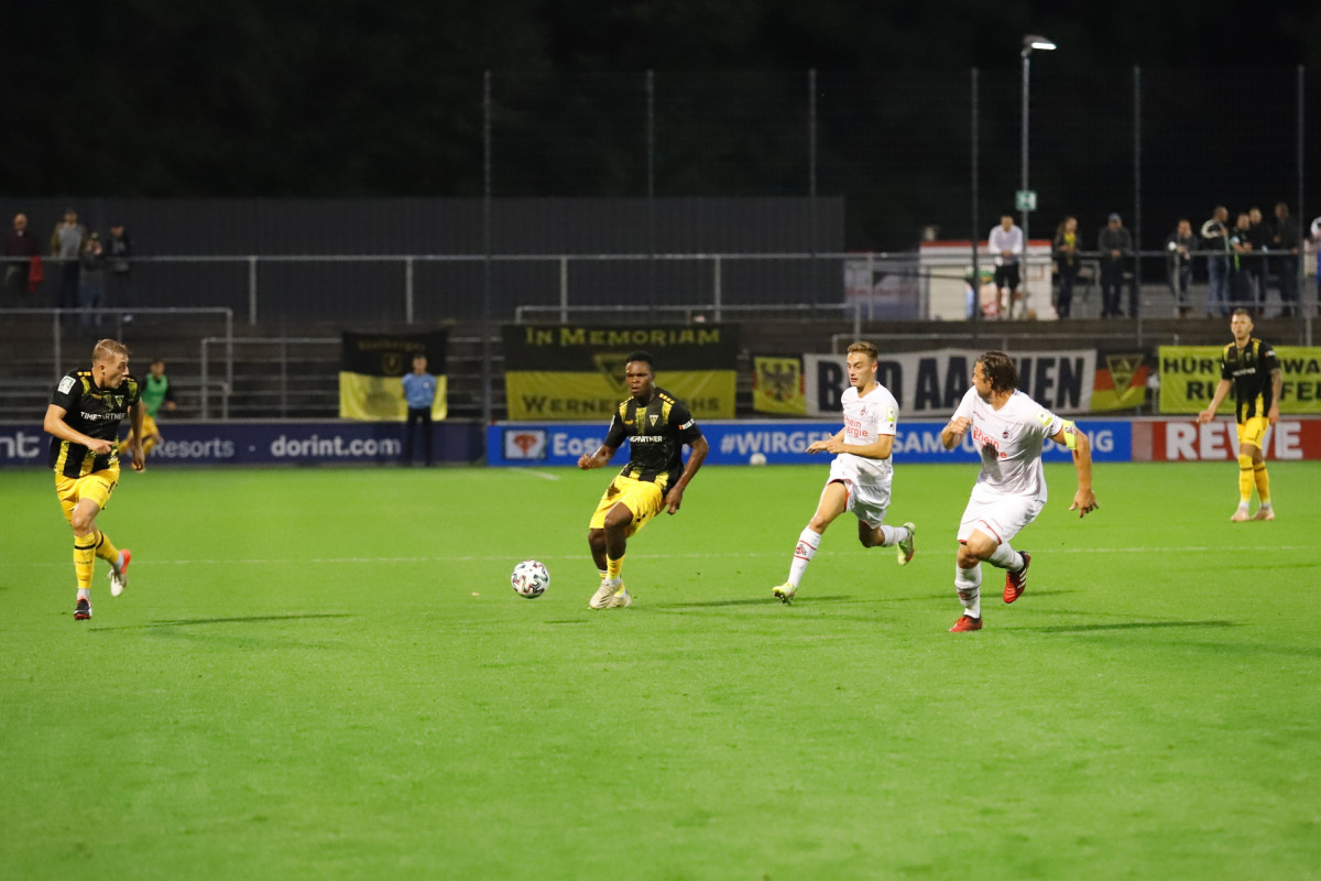 Der Knoten ist geplatzt. Am siebten Spieltag der Regionalliga West sicherte sich die Alemannia den ersten Saisonsieg. Bei der U21 des 1. FC Köln, die mit einem Sieg die Tabellenführung hätte übernehmen können, siegten die Schwarz-Gelben vor 700 Zuschauern verdient mit 3:1 (3:1). Mann des Abends war Jannik Mause, der mit einem lupenreinen Hattrick alle Aachener Treffer erzielte.