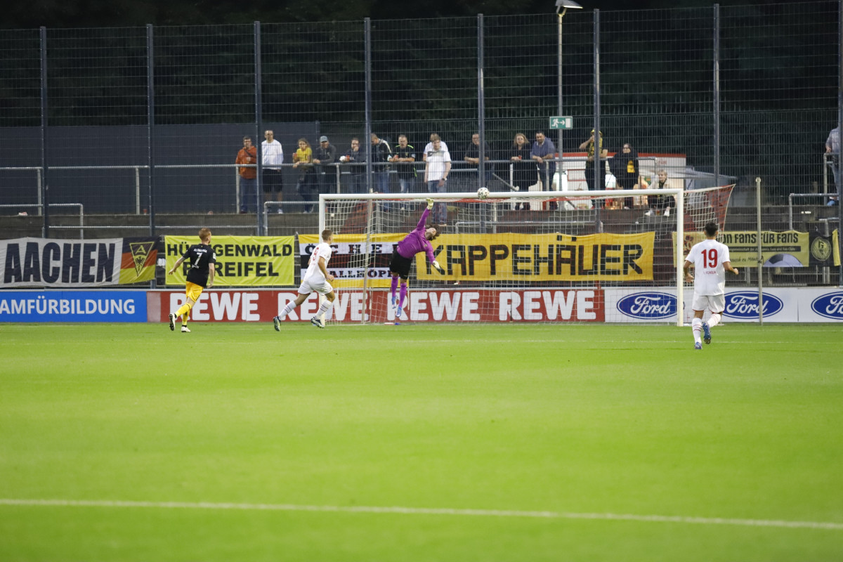 Die Kölner U21, die bis dato mit 17 Treffern den besten Angriff der Liga stellt, war nach dem Seitenwechsel gefordert. Außer einem Kopfball von Nottbeck (48.) ließen die Alemannen aber nicht viel zu. Die Schwarz-Gelben verteidigten mit Leidenschaft und setzten angetrieben von rund 350 mitgereisten Fans gelegentliche Nadelstiche. Der für den erschöpften Mause eingewechselte Damaschek schloss einen Entlastungsangriff aber zu unplatziert ab (64.). In der Schlussphase dezimierten sich die Gastgeber auf ihrer Aufholjagd selbst. Örnek ließ sich gegen Cebulla zu einer Tätlichkeit hinreißen und wurde des Feldes verwiesen (81.). Köln warf in Unterzahl noch einmal alles nach vorne und bot der Alemannia noch einige exzellente Kontergelegenheiten. Buchheister scheiterte nach einem Solo an FC-Keeper Urbig, der auch den Nachschuss von Falaye noch entschärfen konnte (84.). Eine Minute vor dem Ende verhinderte Kölns Schlussmann bei einem Kopfball von Buchheister mit einem sensationellen Reflex einen höheren Aachener Erfolg (89.). Der erlösende Schlusspfiff folgte nach vier Minuten Nachspielzeit. Endlich war der langersehnte erste Saisonsieg unter Dach und Fach!