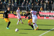 Der zweite Spielabschnitt begann zunächst ohne große Höhepunkte. Garcia konnte zwar einmal in den Strafraum eidringen, doch Nikolaou bekam sein Abwehrbein dazwischen und blockte den Schussversuch ab (55.). Nach einer Stunde kam Dennis Dowidat für Mazan Moslehe in die Partie. Garcia rückte in den Angriff und flankte kurze Zeit später von rechts auf den kurzen Pfosten, wo sich Marquet gegen Nikolaou behaupten konnte und knapp daneben köpfte (62.). Drei Minuten später drehte sich Dowidat an der Strafraumgrenze um seinen Gegenspieler und zog ab. Das Leder ging erneut nur knapp am rechten Pfosten vorbei (65). Die Alemannia blieb am Drücker und die Gastgeber dezimierten sich für die Schlussphase personell selbst. Der bereits verwarnte Golobart traf Marquet an der Mittellinie mit dem Ellenbogen und konnte sich über Gelb-Rot nicht beklagen. Nach einer Hereingabe von Ajani hatte Garcia zehn Minuten vor dem Ende die Führung auf dem Fuß, traf die Kugel jedoch freistehend aus kurzer Distanz nicht richtig. Der mitgereiste Anhang wittere dennoch Morgenluft und trieb die Schwarz-Gelben weiter nach vorne. Der Sekundenzeiger stand kurz vor seiner finalen Umdrehungsrunde, als Dowidat das Leder von der linken Seite präzise in den Strafraum zwirbelte. Marquet schraubte sich hoch und traf per Kopf in die lange Ecke - 0:1 (89.)! Mit einem Lucky Punch konnte die Alemannia drei wertvolle Zähler sichern und in der Tabelle weiteren Boden gut machen. Als Tabellenelfter beträgt der Vorsprung auf die Abstiegsränge vor dem Westschlager am nächsten Samstag gegen Rot-Weiß Essen nunmehr zehn Punkte.