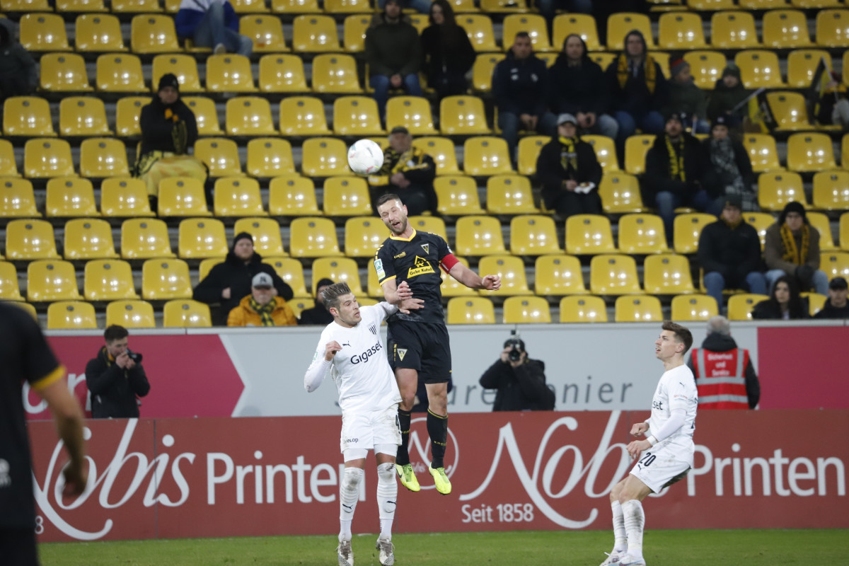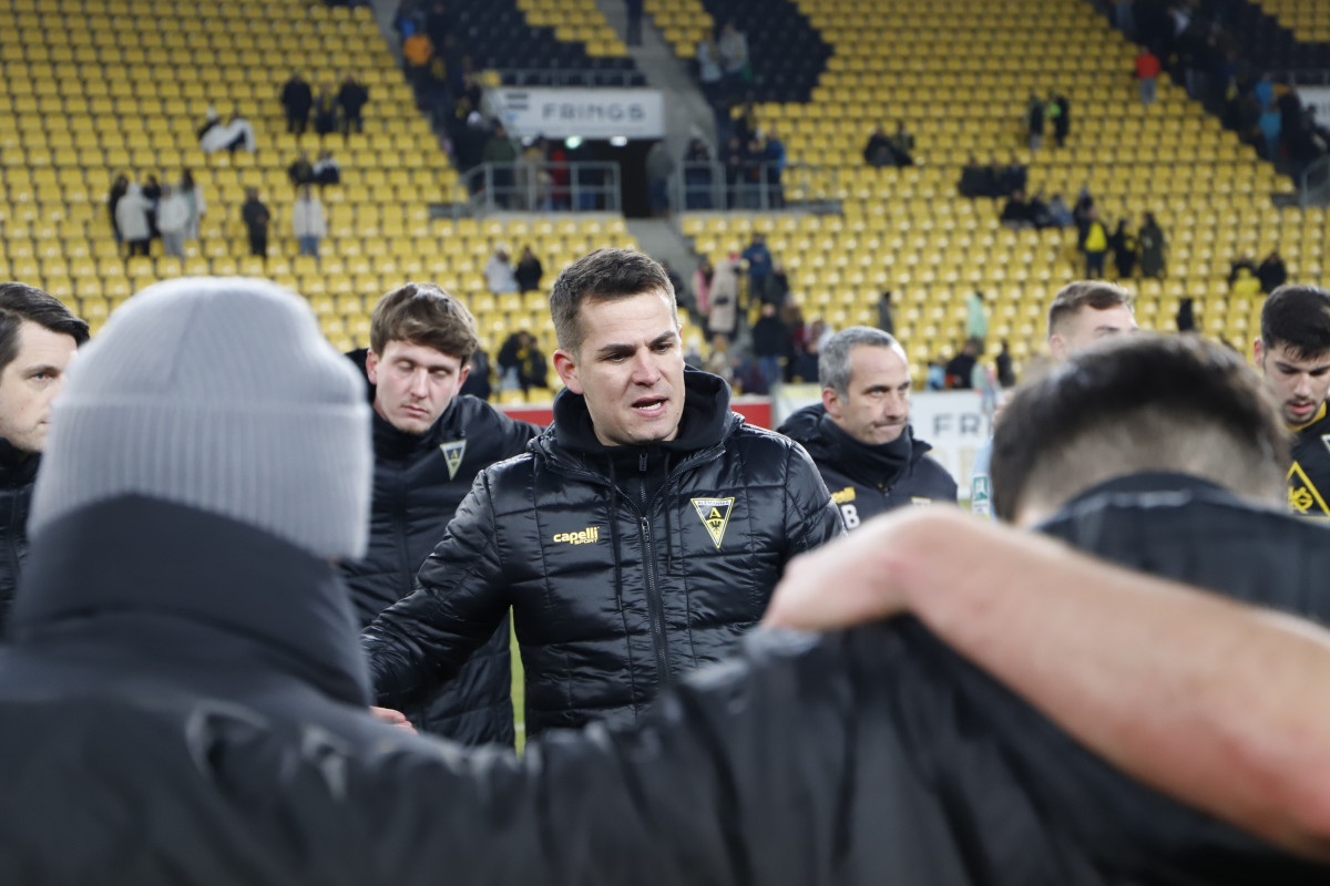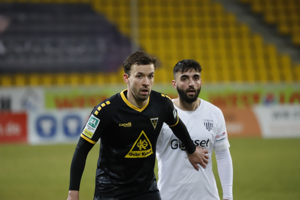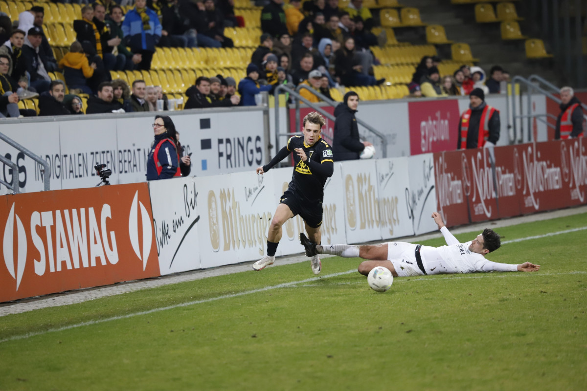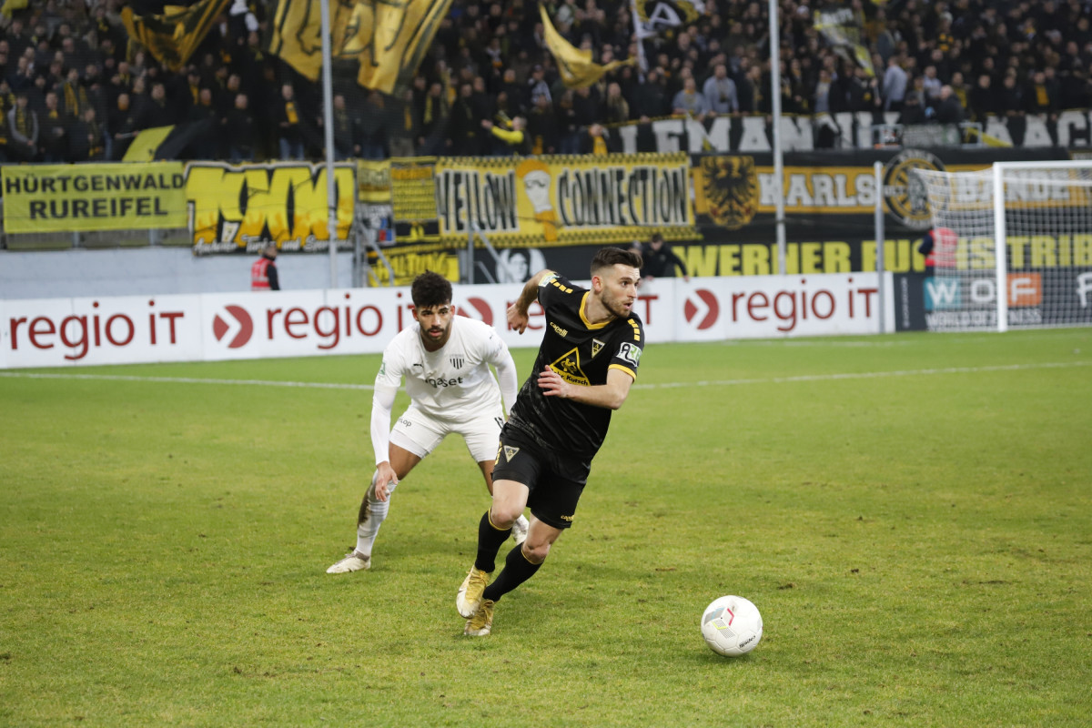„Wir wollen auf unserer kleinen Erfolgswelle weitersurfen“, ist sich Cheftrainer Helge Hohl dem Ziel gegen den kommenden Gegner, dem Aufsteiger 1. FC Bocholt bewusst. Nach Siegen gegen die SG Wattenscheid und auswärts beim SC Wiedenbrück und 5:0-Toren soll nun auch zum ungewöhnlichen Spieltermin am Samstagabend wieder gepunktet werden. Daran soll auch die Wetterlage der letzten Tage nichts ändern. „Der Platz ist in Ordnung“, schildert Hohl am Freitagnachmittag. Während andere Spiele in der Regionalliga West schon abgesagt wurden, soll am Tivoli gespielt werden. „Wir wollen im Spielrhythmus bleiben, auch wenn wir in dieser Trainingswoche wieder improvisieren mussten.“ Ein Tag wurde aufgrund des Schnees in der Halle trainiert, ein Tag auf der Anlage des DJK FV Haaren, am Freitag konnte sich die Mannschaft schließlich wieder auf dem heimischen Trainingsplatz vorbereiten. „Das war eine Schlammschlacht“, merkt Mittelfeldspieler Vleron Statovci an. Eine Schlammschlacht im Training, die die Schwarz-Gelben schon auf eine mögliche Schlammschlacht beim Samstagabend-Flutlichtspiel auf demTivoli vorbereitet hat. Für das Duell gegen die Bocholter kann Hohl wieder auf die zuletzt gesperrten Jannis Held und Frederic Baum zurückgreifen. Dafür fehlen Sebastian Schmitt und Exaucé Andzouana beide krankheitsbedingt und auch der Einsatz von Dino Bajric, der ebenfalls leicht erkältet ist, ist noch fraglich. Julian Schwermann konnte zwar wieder das Mannschaftstraining absolvieren, ist aber noch keine Option für den Kader. Zudem fehlt weiterhin der Langzeitverletzte Lars Oeßwein.