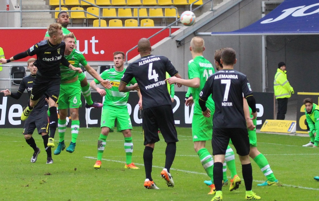 Die Alemannia hat das Spitzenspiel des 14. Spieltags in der Regionalliga West verloren. Nach fünf Spielen ohne Niederlage mussten sich die Schwarz-Gelben der U23 von Borussia Mönchengladbach mit 2:4 geschlagen geben. Vor 7.100 Zuschauern auf dem Tivoli führte der Spitzenreiter nach 24 Minuten bereits mit 3:0.