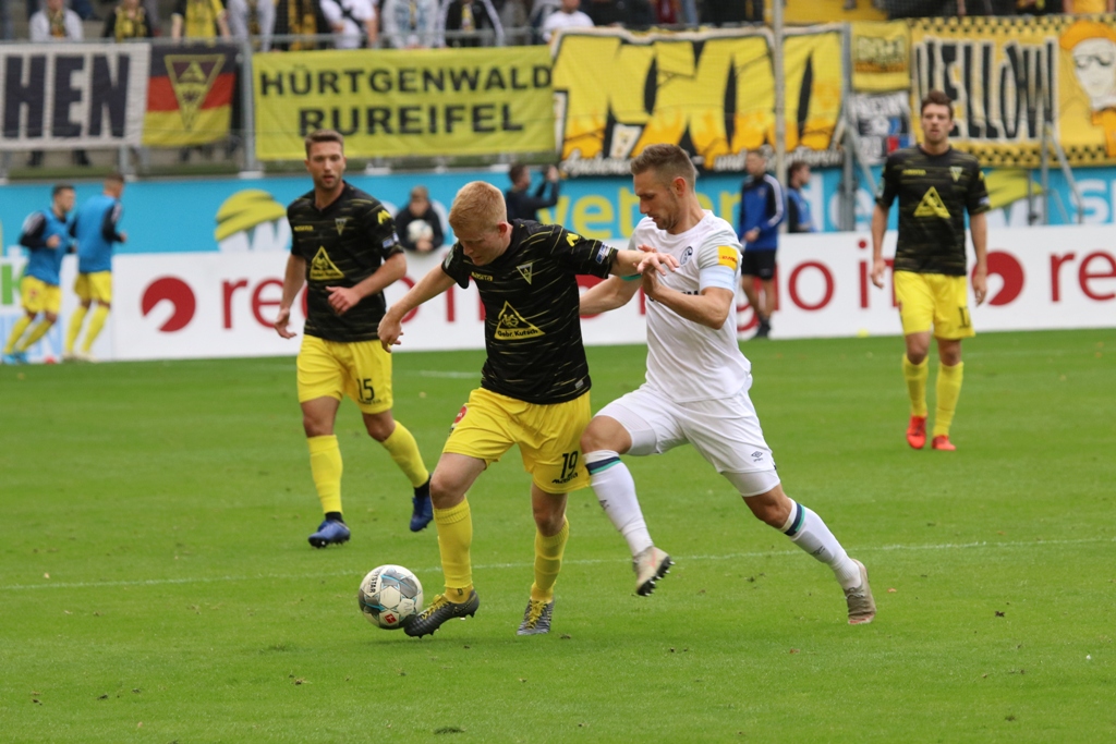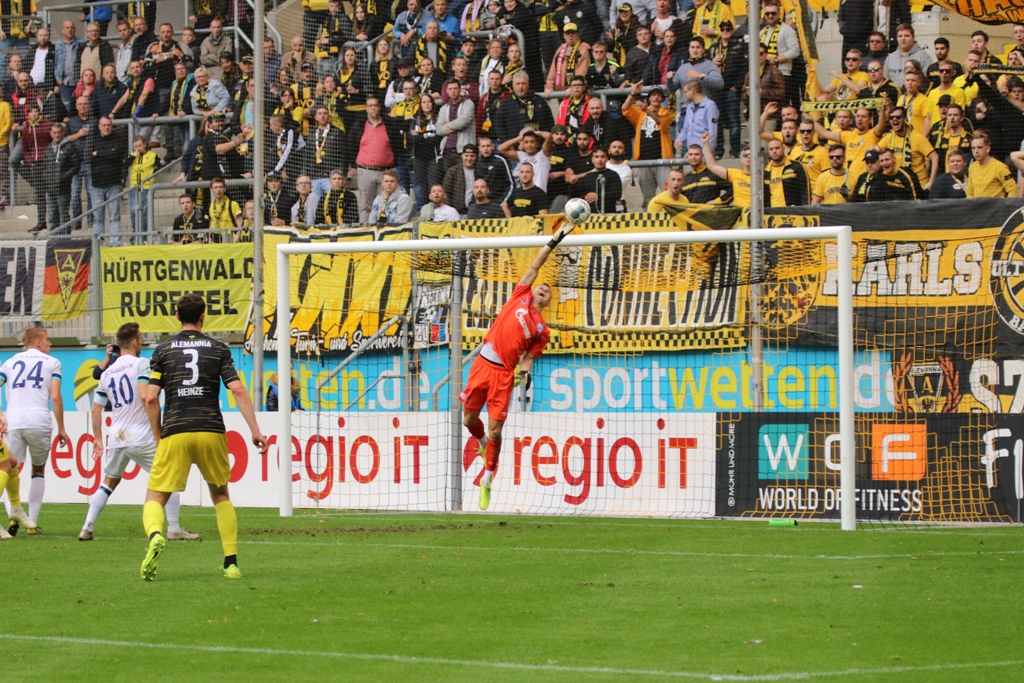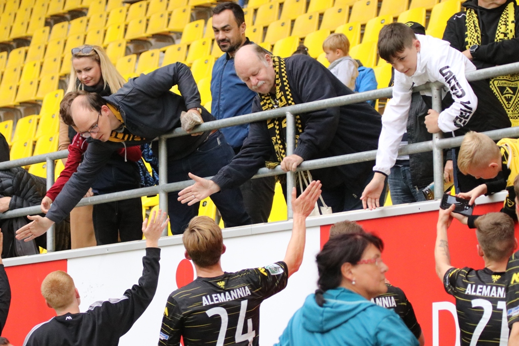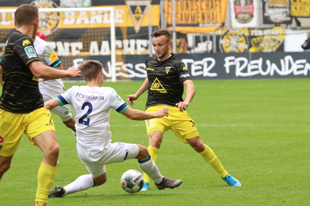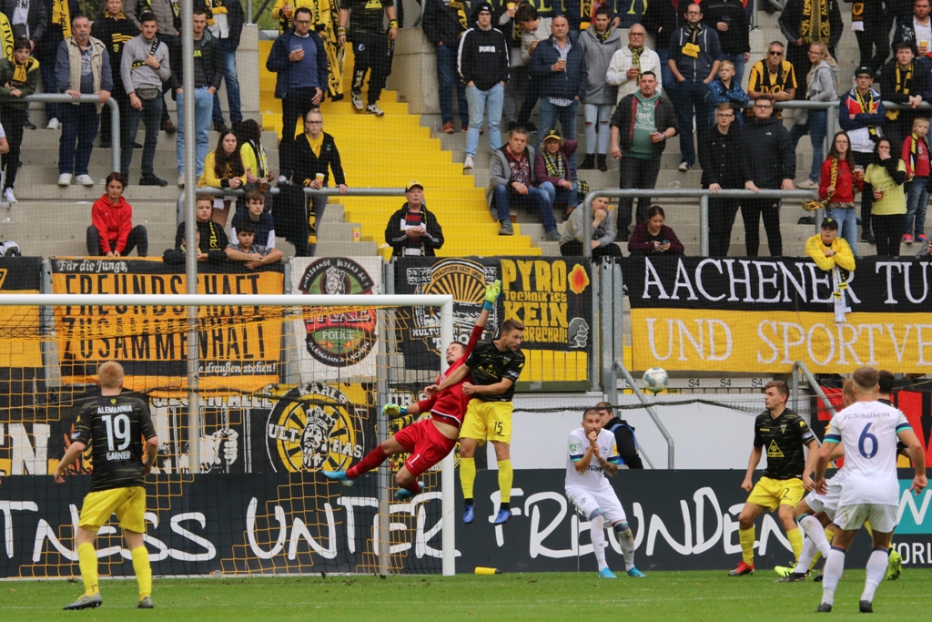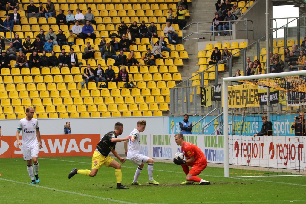Am 13. Spieltag der Regionalliga West musste die Alemannia die erste Heimniederlage einstecken. Gegen die U23 des FC Schalke 04 unterlagen die Schwarz-Gelben vor 5.500 Zuschauern mit 0:1 (0:0). Die Alemannen erspielten sich die Vielzahl von Torchancen, scheiterten im Abschluss aber gleich mehrfach am Aluminium.