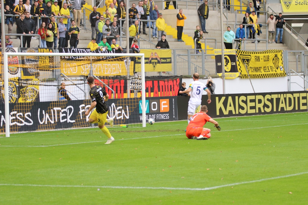 Verfügbare Blöcke: Geöffnet sind die Blöcke O4 bis O6 auf der Osttribüne, der gesamte Kaiserstädter Wall (S1 bis S6) sowie die Blöcke W1 und W2 auf der Sparkassen Tribüne. Für Gästefans sind die Blöcke N1 (Stehplatz) und N2 (Sitzplatz) geöffnet.