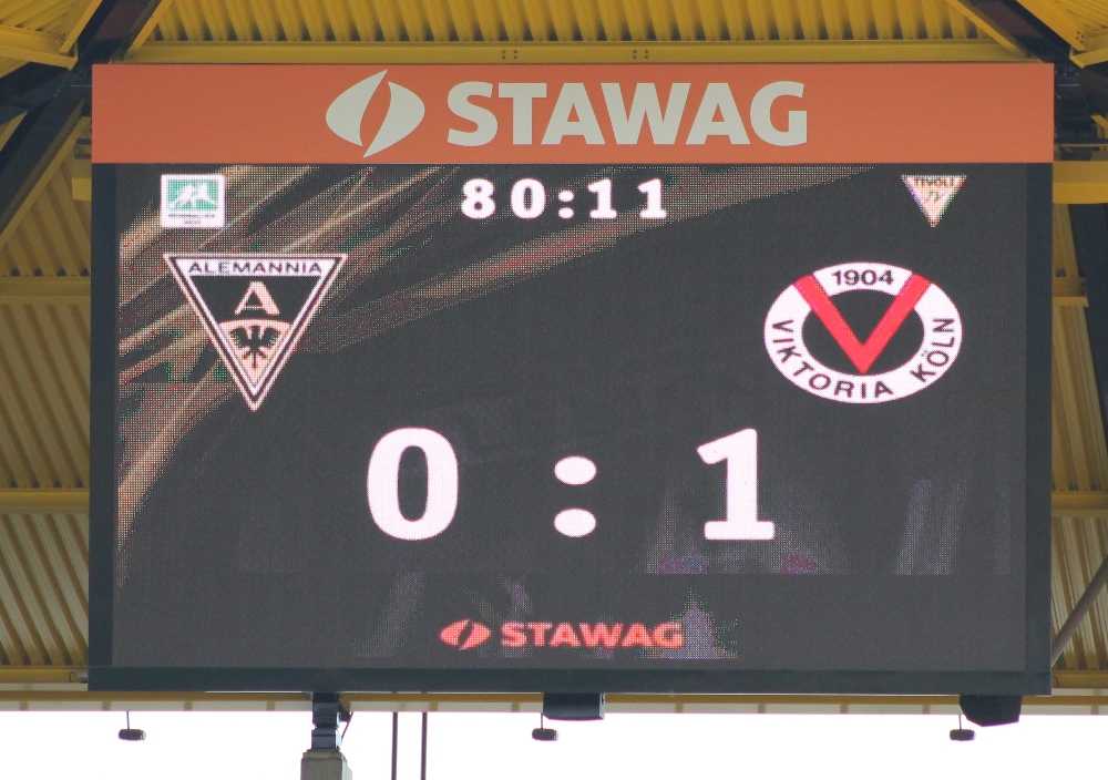 Der gerechtete Lohn für einen engagierten und couragierten Auftritt der Alemannia ist am Samstagnachmittag ausgeblieben. Gegen den ambitionierten Spitzenklub FC Viktoria Köln mussten sich die Schwarz-Gelben durch ein Kopfballtor von Jannik Löhden zehn Minuten vor dem Ende mit 0:1 geschlagen geben. 4.800 Fans wurden Zeuge der sechsten aufeinanderfolgenden Aachener Niederlage.