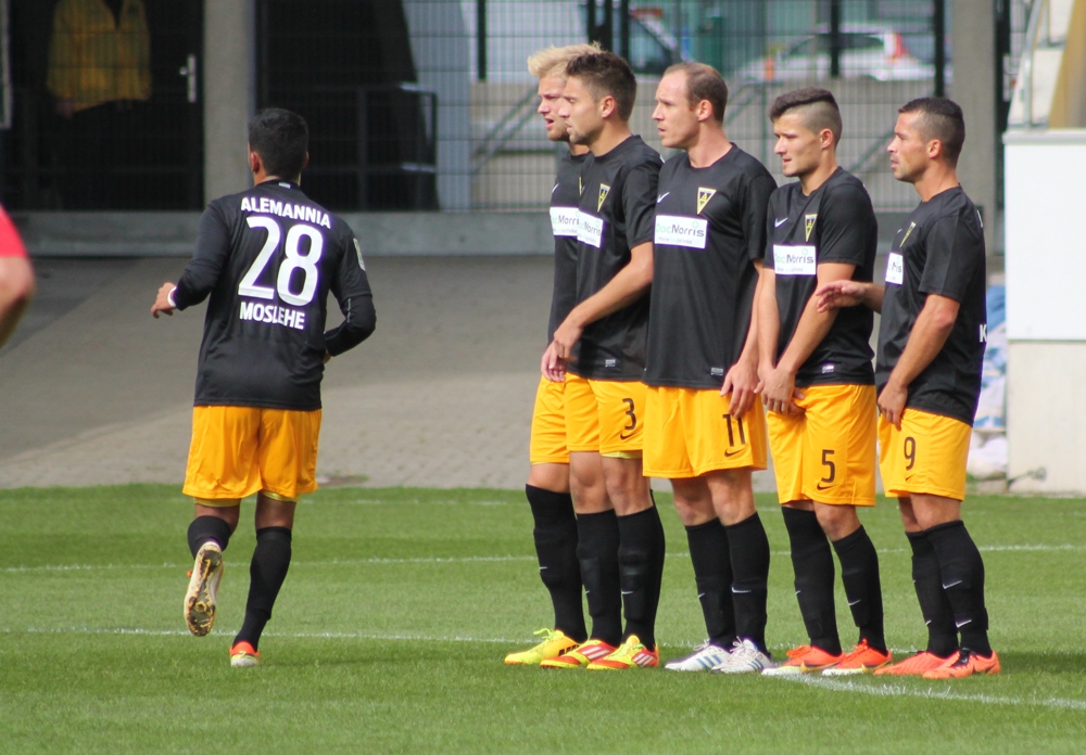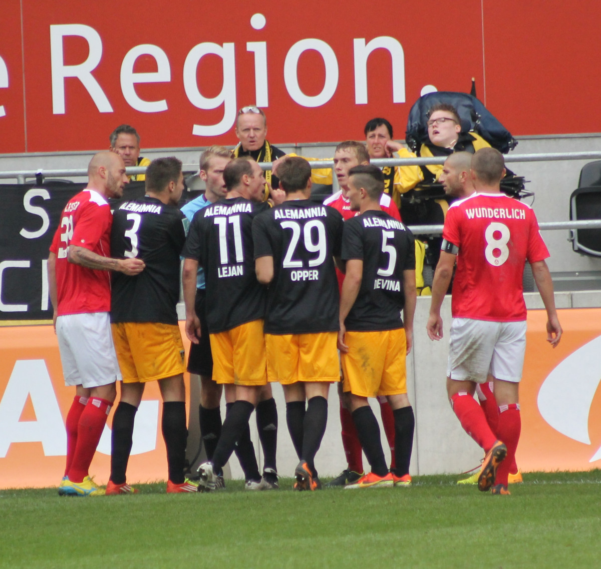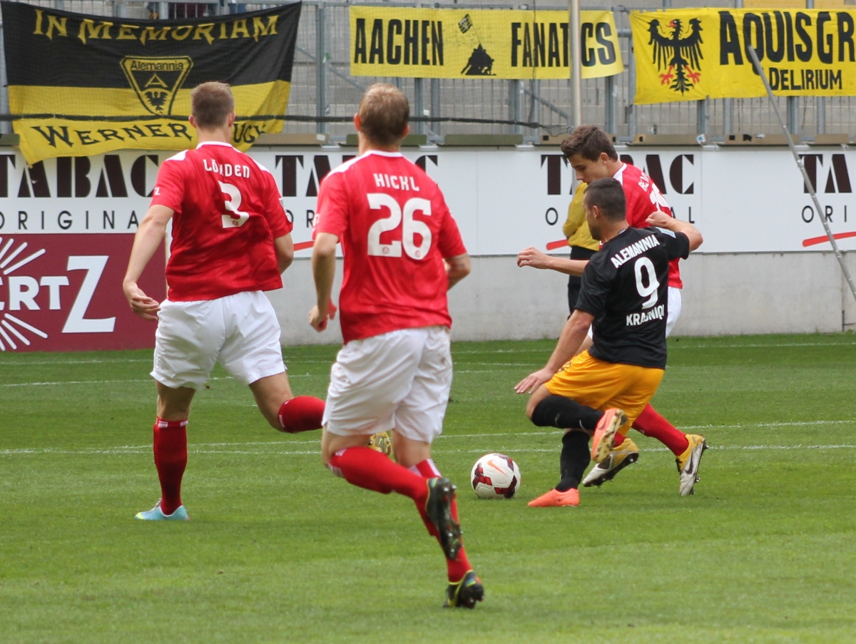Alemannia Aachen: Löhe – Ajani, Hackenberg, Opper, Stevens – Marquet, Drevina, Lejan (85. Garcia), Strujic (77. Ahrens) – Moslehe (87. Sangaré), Krasniqi / Trainer: Hans-Peter Schubert