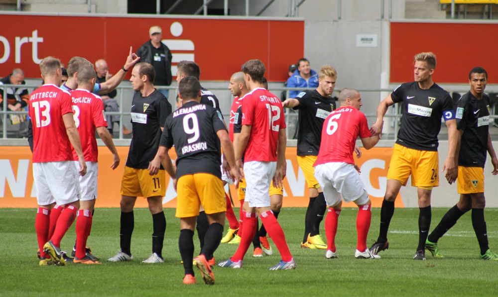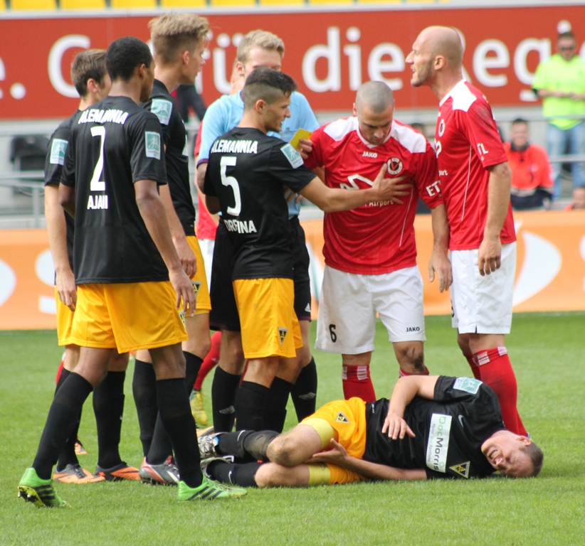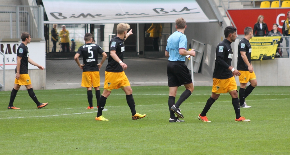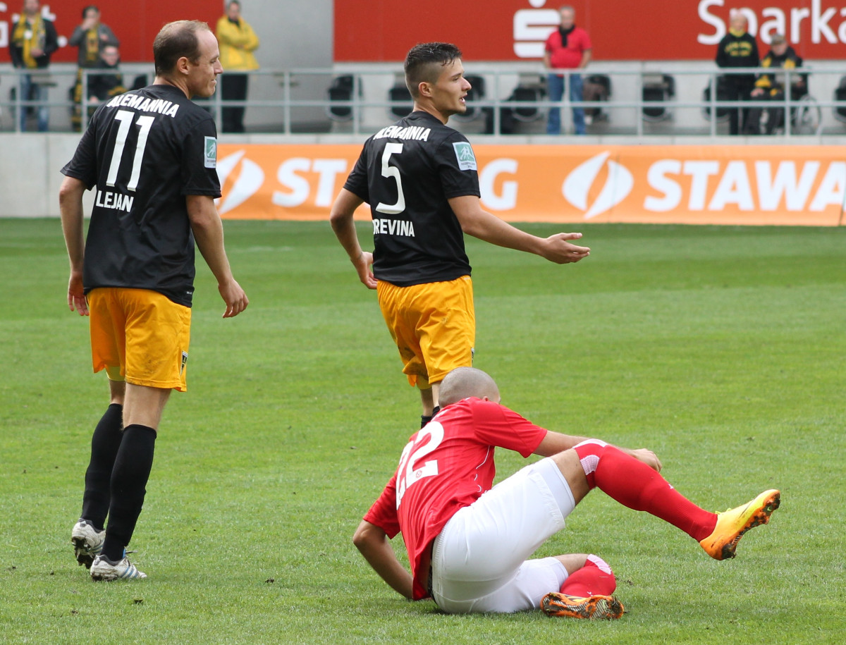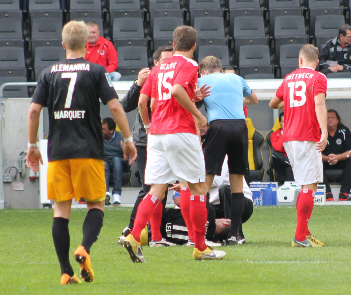 Alemannia Aachen: Löhe – Ajani, Hackenberg, Opper, Stevens – Marquet, Drevina, Lejan (85. Garcia), Strujic (77. Ahrens) – Moslehe (87. Sangaré), Krasniqi / Trainer: Hans-Peter Schubert