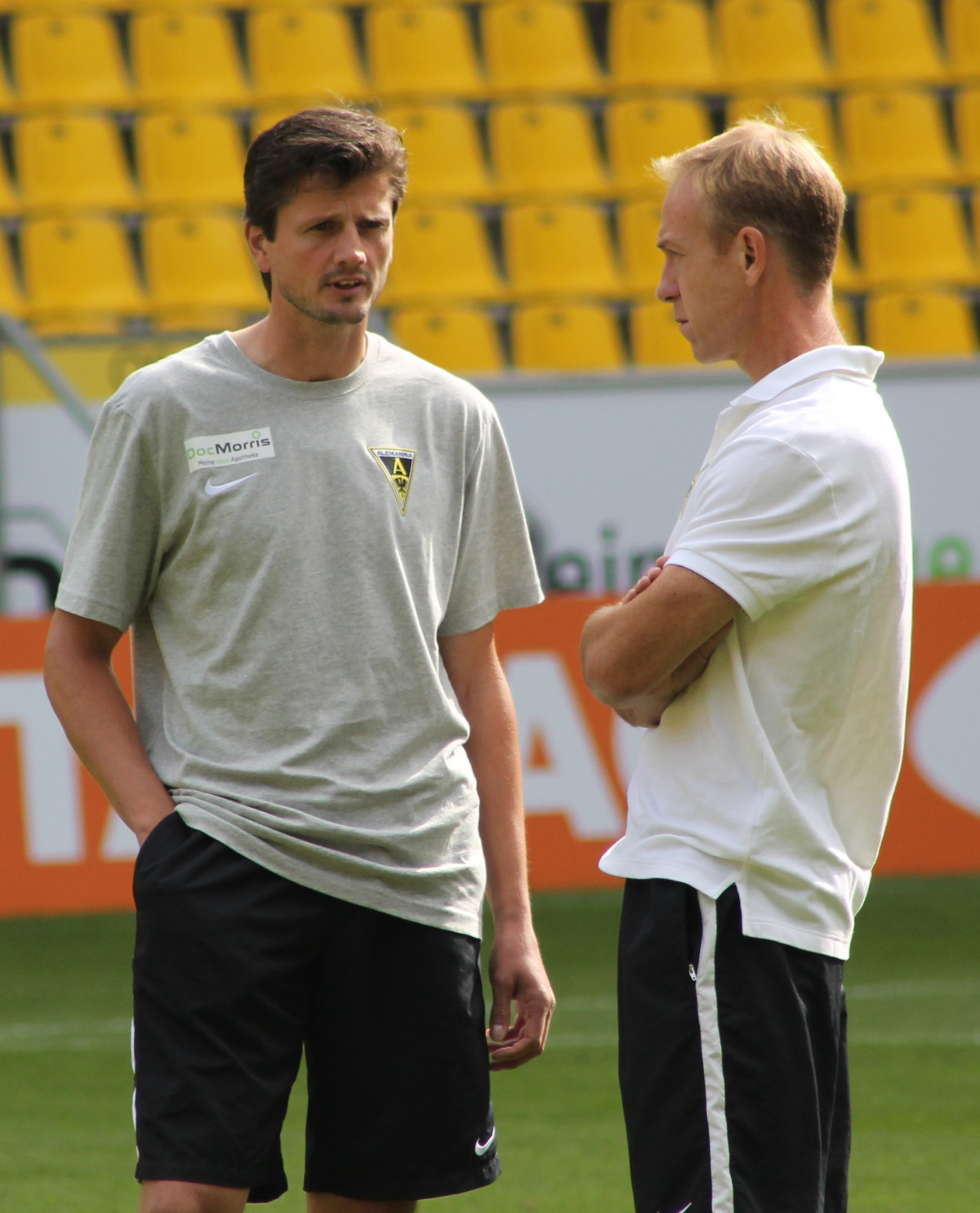 Verzichten müssen die Tivoli-Kicker neben dem rot-gesperrten Jochen Schumacher auf den verletzten Kris Thackray sowie den erkrankten Masato Yoshihara. Ein Fragezeichen steht zudem hinter der Nominierung des zweiten Torwarts Thomas Unger, den Schulterprobleme plagen. Die Wahrscheinlichkeit, dass es neben dem erforderlichen Wechsel auf der rechten Abwehrseite weitere Änderungen gibt, scheint relativ groß. „Für einige Spieler ist es schon sehr viel, drei Spiele in so kurzer Zeit zu bestreiten. Das merkt man auch im Training“, sagt Peter Schubert. Bislang haben sich rund 3.700 Fans ein Ticket zur Unterstützung gesichert. Geleitet wird die Partie von Sven Waschitzki. Marcus Droste und Dalibor Guzijan komplettieren das Schiedsrichtergespann auf dem Tivoli.