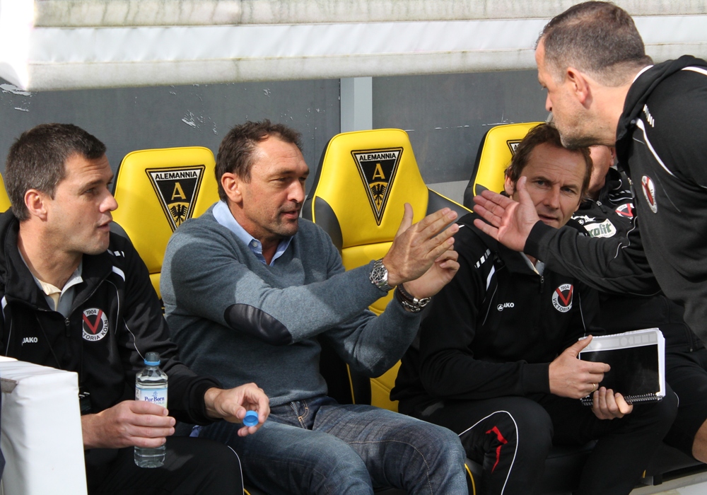 Die Favoritenrolle scheint vor dem Duell klar verteilt. „Viktoria Köln ist der große Favorit in der Liga, der von sich aus gesagt hat, dass er unbedingt aufsteigen will“, weiß Peter Schubert. Während es für die Alemannia nach zwei Abstiegen in Folge darum geht, sich sportlich und wirtschaftlich zu konsolidieren, gibt es für die Kicker vom Sportpark Höhenberg eigentlich nur ein Ziel. Und für dieses Unterfangen hat der Kölner Fusionsverein vor dieser Spielzeit erneut personell aufgerüstet. „Der Gegner ist gespickt ist mit sehr erfahrenen Leuten, die wissen, um was es geht.“ Nicht nur das kickende Personal ist mit reichlich Praxis in höheren Ligen ausgestattet. Mit Claus-Dieter „Pele“ Wollitz hält seit Saisonbeginn ein Coach die Zügel in der Hand, der sicherlich klare Vorstellungen hat, wohin die Reise bei den Domstädtern führen soll.