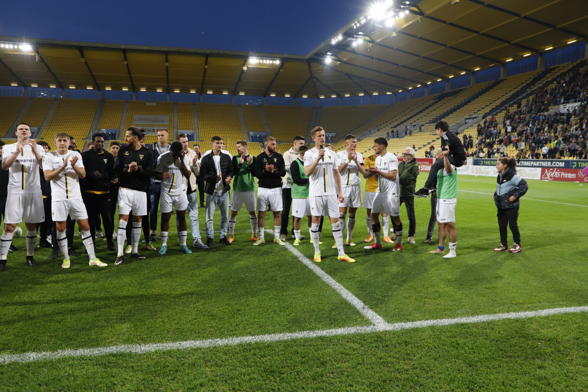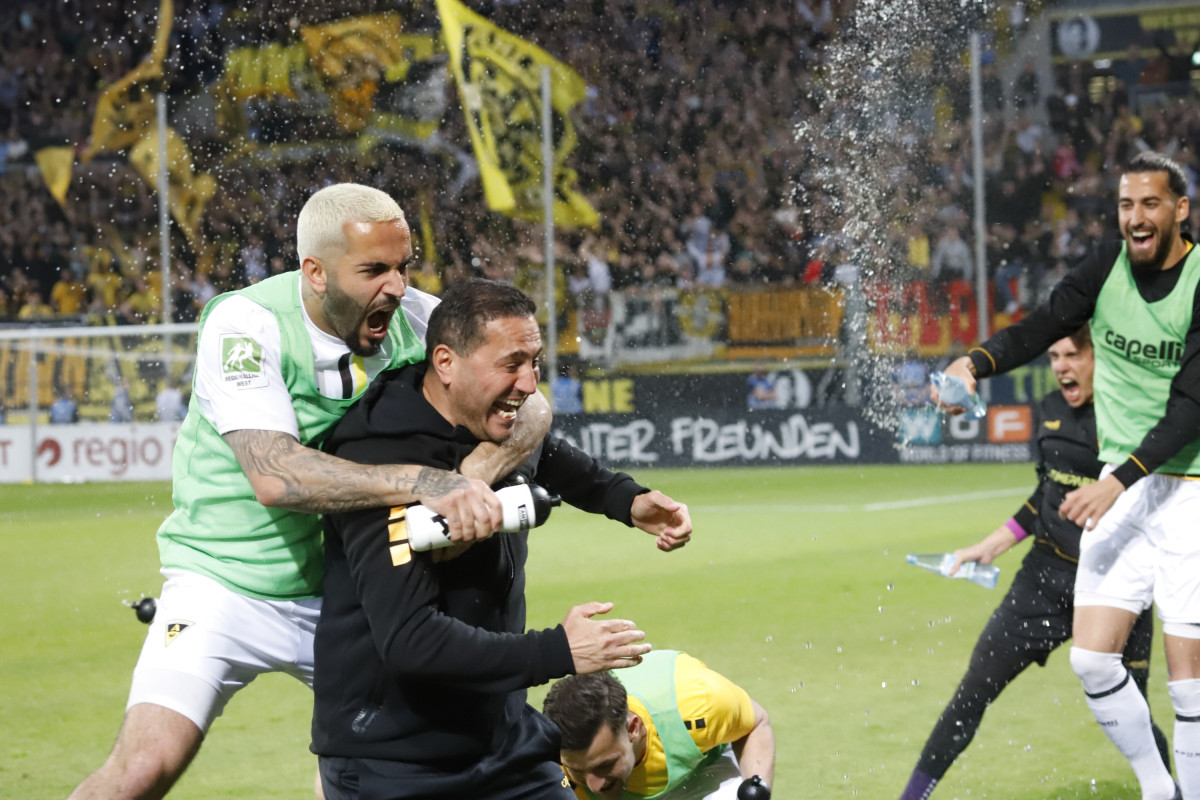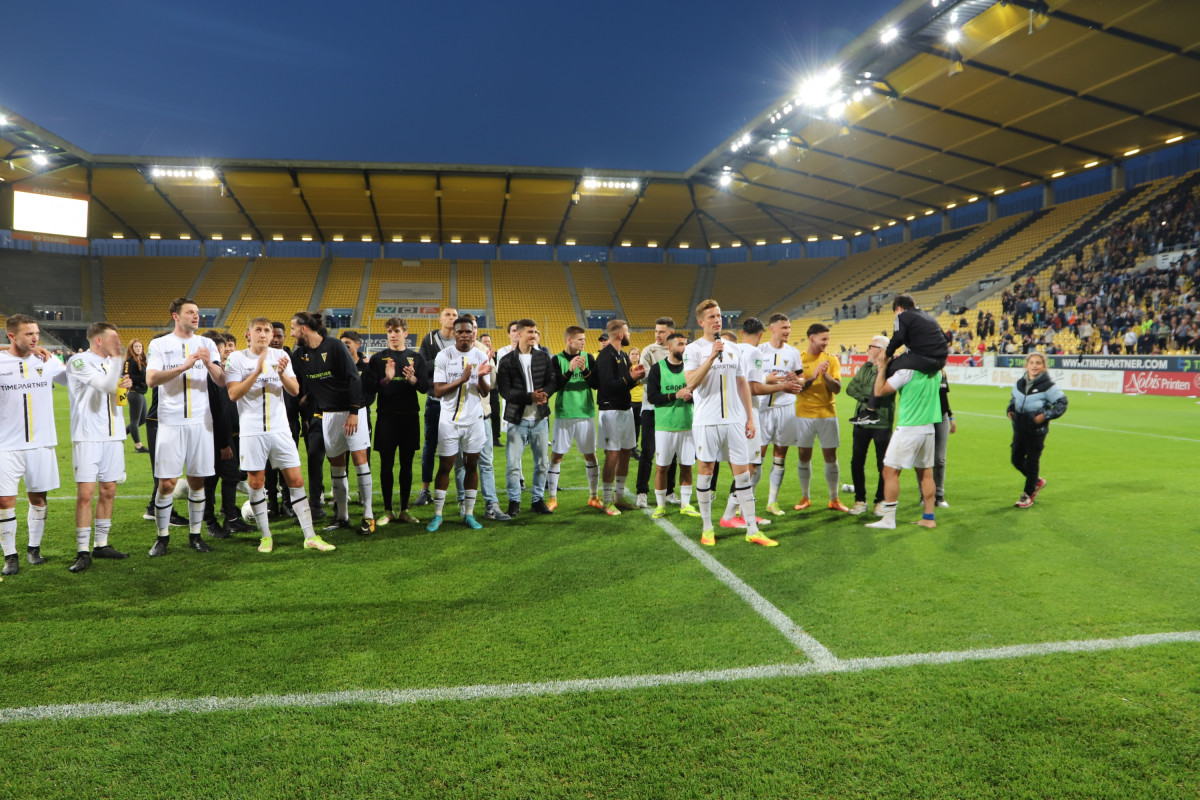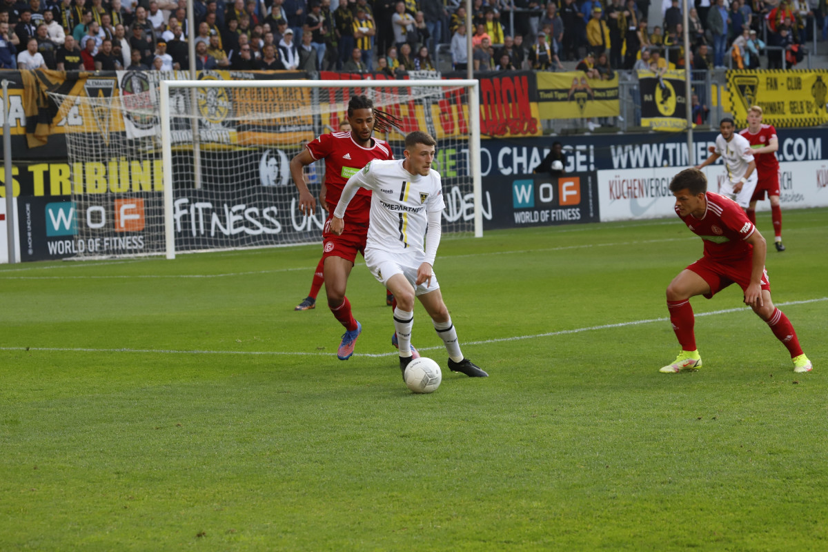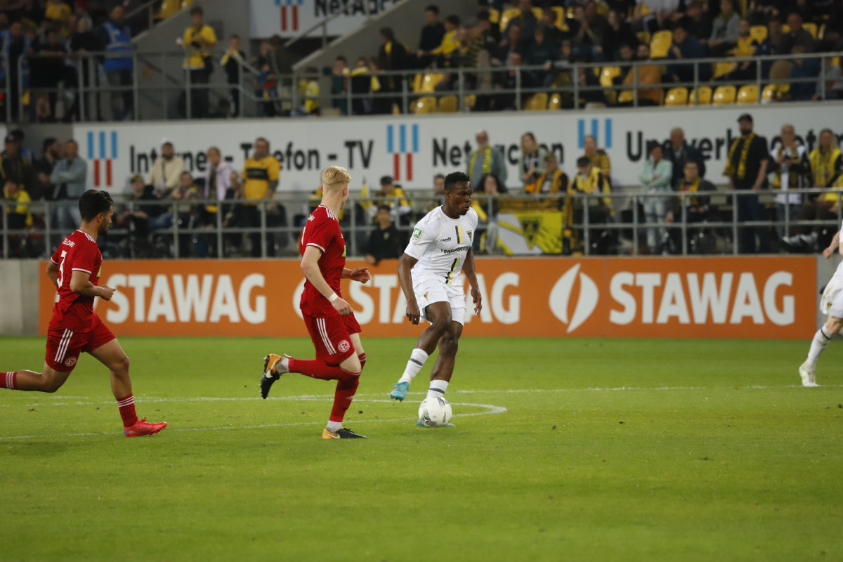 Durch das Unentschieden des Bonner SC bei Rot Weiss Ahlen ist es amtlich: Alemannia Aachen wird auch in der Saison 2022/23 in der Regionalliga West spielen. Den Grundstein für den Klassenerhalt legte Schwarz-Gelb am Freitagabend mit einem Sieg des puren Willens – vor 9900 ekstatischen Fans an der Krefelder Straße besiegelten die Tore von Franko Uzelac (45.+1), Tim Korzuschek (47.) und Hamdi Dahmani (84.) den 3:1-Erfolg über die U23 von Fortuna Düsseldorf. Diese war zwischenzeitlich durch Patrick Sussek (11.) in Führung gegangen.