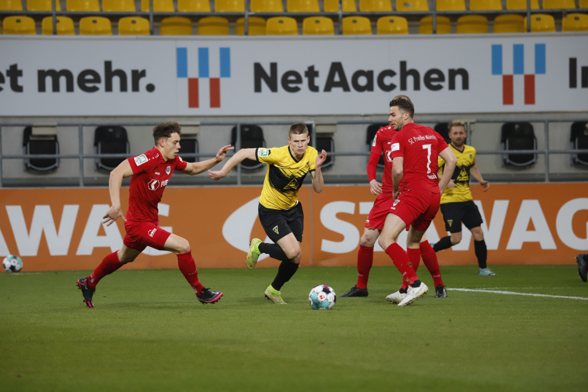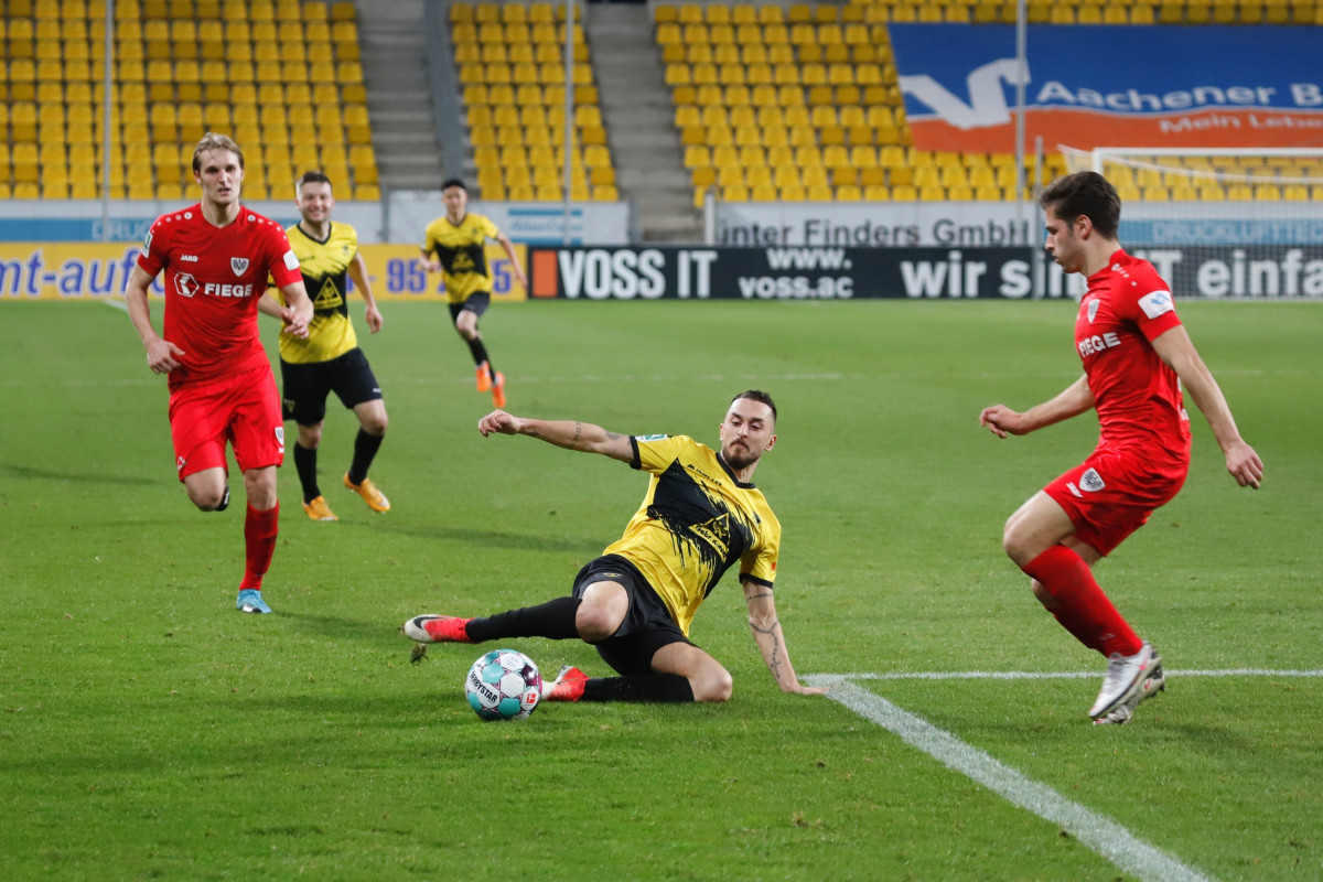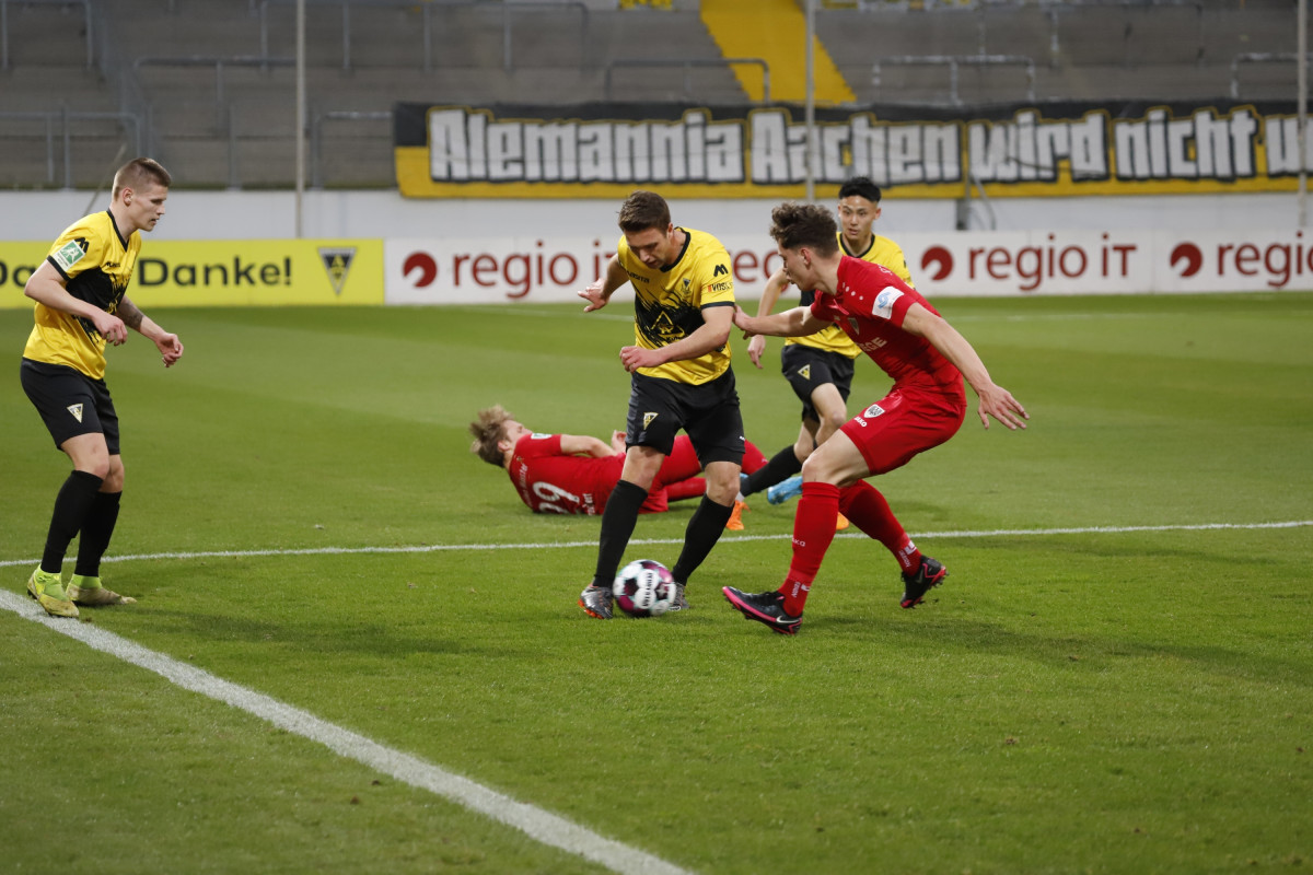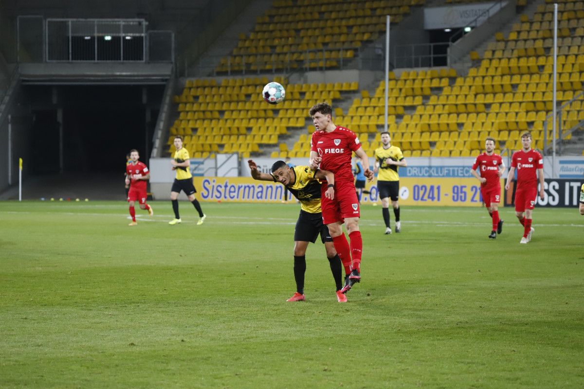 Alemannia Aachen: Mroß – Uchino, Heinze, Wallenborn, Galle – Rüter, Müller (61. Fejzullahu), Fiedler (67. Rakk), Schmitt (46. Batarilo) – Studtrucker, Aydogan (46. Dahmani) / Trainer: Dietmar Bozek / Kristoffer Andersen