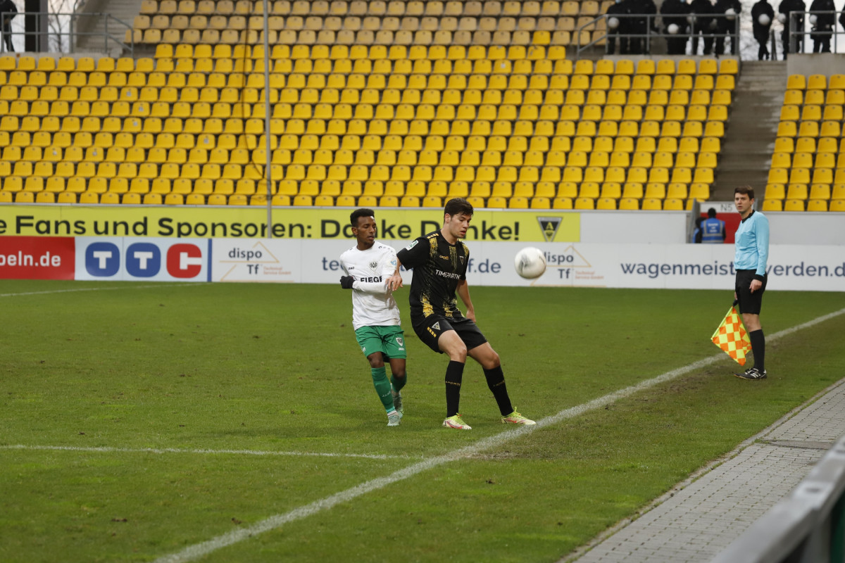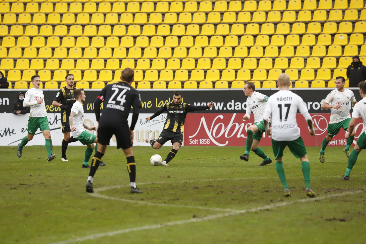 Die Alemannen wechselten zur Halbzeit doppelt, auf dem Platz gaben aber weiter die Preußen den Ton an. Henok Teklab (51.), Langlitz nach einer Ecke (54.) und Deters (60.) konnten den Spielstand aber nicht weiter in die Höhe schrauben. Im zweiten Durchgang präsentierte sich die Alemannia etwas aktiver, konnte im Mittelfeld auch einige Bälle gewinnen. Doch Offensivaktionen blieben Mangelware. Lange Bälle auf Zielspieler Mause verpufften, André Dej schlug ein paar Flanken in den Strafraum, die jedoch wenig gefährlich waren. Marco Müller aus spitzem Winkel (76.) und Lukas Wilton nach einem Eckball am langen Pfosten (85.) hatten noch die ansprechendsten Szenen auf ihrer Seite. Ansonsten konnte sich Torhüter Mroß – ähnlich wie im Hinspiel – das ein oder andere Mal auszeichnen. In der 82. Minute rettete er beispielsweise in höchster Not gegen Wegkamp. Trotz eines Chancenplus für den Gast auch in Abschnitt zwei blieb es am Ende beim 0:2 aus Aachener Sicht. „Es hat mich sauer gemacht, wie wir in der ersten Halbzeit aufgetreten sind. Da war keine Konsequenz und zu viel Angst im Spiel. Im zweiten Durchgang waren wir dann etwas griffiger und aktiver, jedoch ist das ein völlig verdienter Sieg für Münster. Jetzt müssen wir uns sammeln und auf Schalke noch einmal alles reinwerfen“, bilanzierte ein frustrierter Kilic nach dem Spiel.