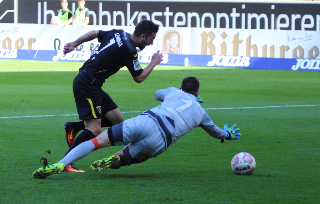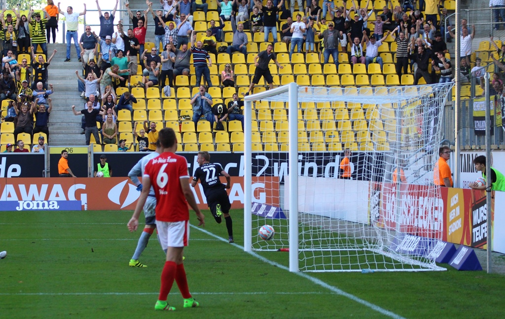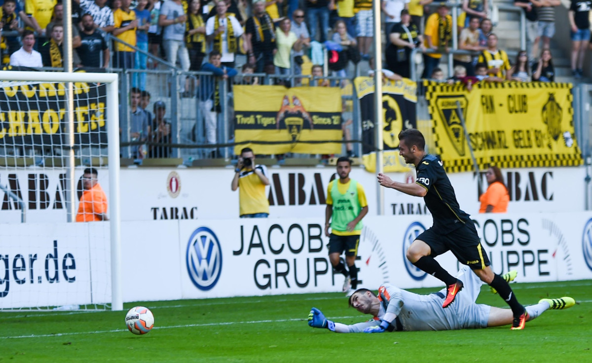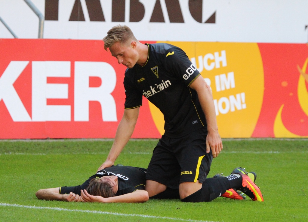 Der zweite Durchgang begann mit einer Kopfballchance für RWE. Zeiger köpfte die Rechtsecke von Rabihic aber einen Meter drüber. Auf der Gegenseite profitierte Ernst von einem Missverständnis zwischen Linksverteidiger Huckle und Heimann. Sein Schuss aus spitzem Winkel ging aber knapp drüber (58.). Das Spiel ging in die entscheidende Phase. Die Alemannia stand kompakt, konnte den entscheidenden Konter aber nicht setzen. Nach 77 Minuten hatten die Schwarz-Gelben Glück, als der eingewechselte Bednarski aus 20 Metern volley an die Querlatte traf. Die Dramatik spitze sich zu. Bundesliga-Referee Stegemann packte vier Minuten Nachspielzeit oben drauf, die es nochmal in sich hatten. Nach einer Kopfballstafette musste Winter zunächst kurz vor der Linie klären, dann hämmerte Bednarski das Leder in buchstäblicher letzter Sekunde auf das linke Lattenkreuz. Es bleib beim knappen 1:0-Erfolg für die Tivoli-Kicker.